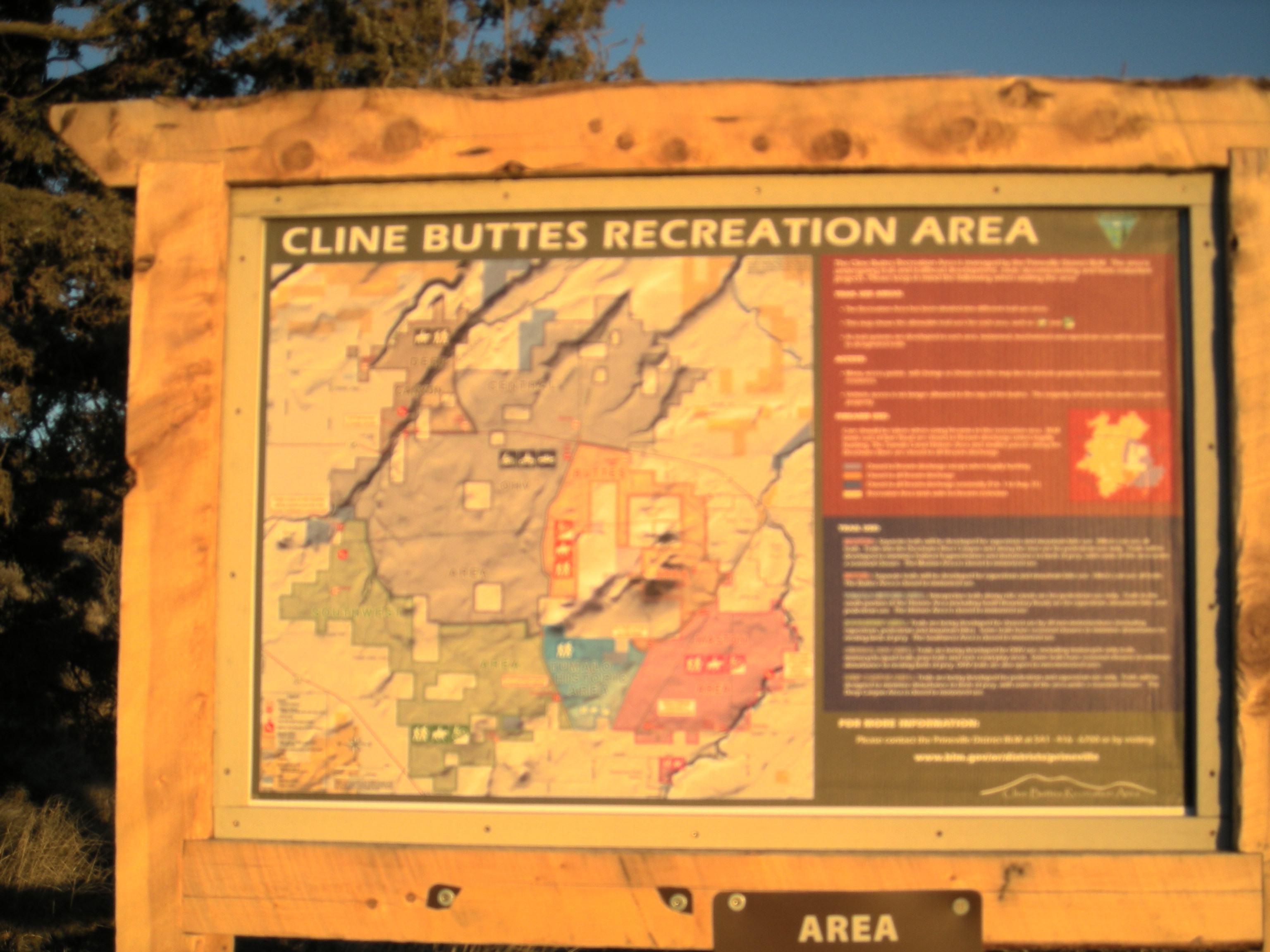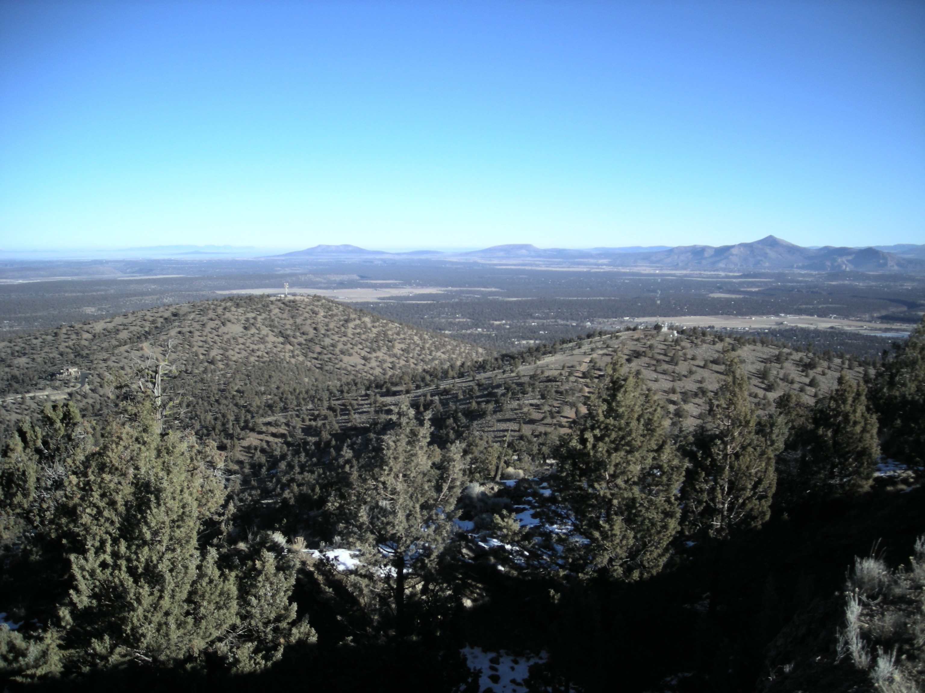 Directions: The map I attached shows a red line going south along Cline Falls Road from Eagle Crest. The distance is 1.5 miles before you come to a BLM sign on the left for the Juniper trailhead. Just past this sign is an obvious road on the right. Take that road one mile up until you come to another BLM sign next to what is a primitive road. Park off the road because gravel trucks use the road from the rock pit at the end. Start hiking up the primitive road. About halfway up you will come to a livestock gate but it is not locked and there are not signs. Almost to the top the main road goes to the right to another radio site. There is a jeep road that takes off to the left which you follow to the top of Cline Butte.