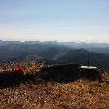 This summit had never been activated and I now know why! The USGS maps would have you believe there is a road to the summit. There actually was a road when the forestry lookout was standing, but the last 1-1/2 miles of road is now overgrown and would take some guts and a great off-road 4-wheeler to traverse it. These same last miles are steep and unrelenting, though completely forested. When the so-called road ends. there are a few hundred feet of vertical trail required to reach the summt.