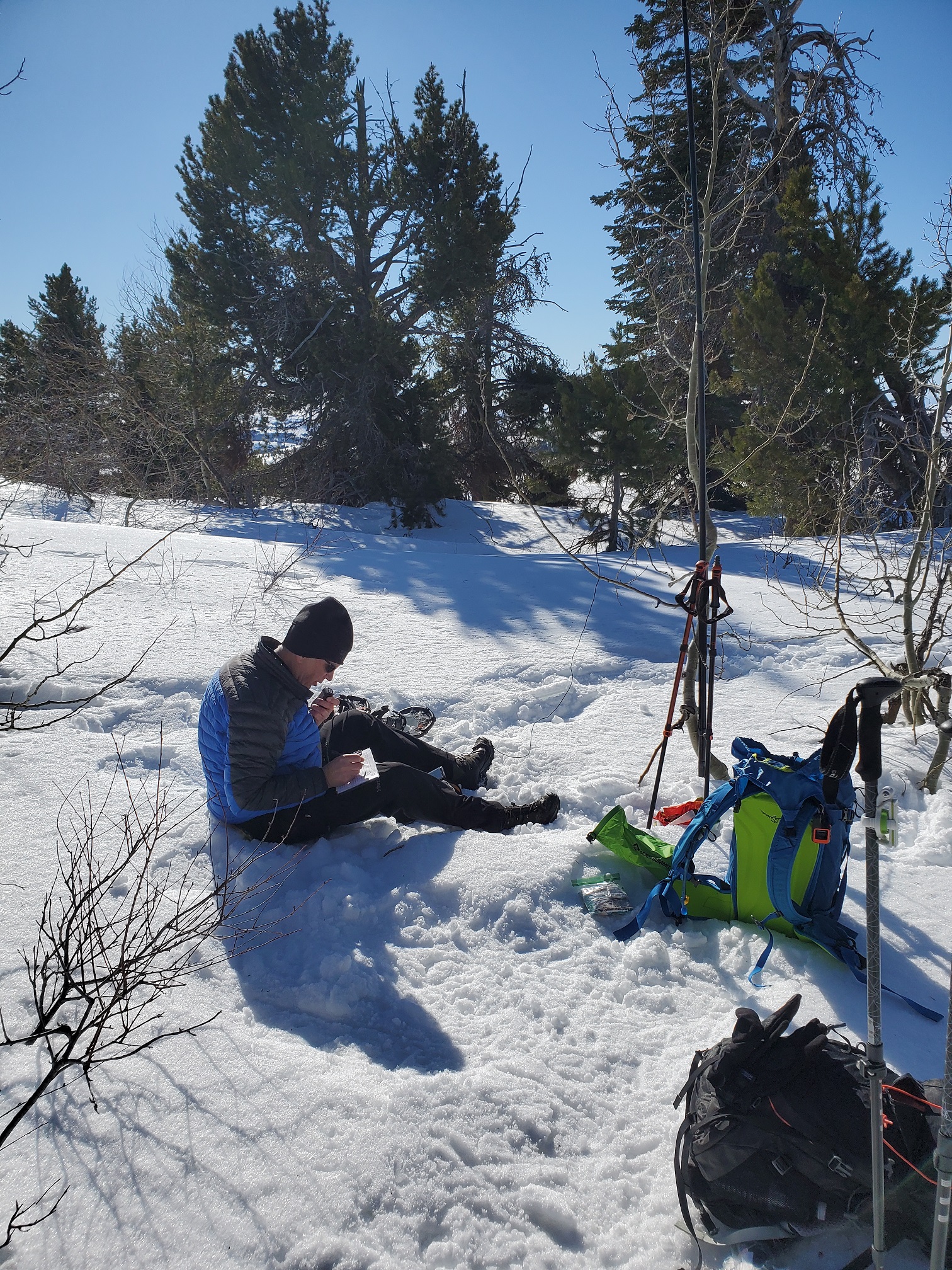 This successful activation occurred a few weeks later. Instead of following the 3.8-mile road access, I pieced together a combination of road, bushwhack and ridge approach. There is ample parking at an established recreation lot (42.16908, -114.27658). The lot is located approximately 1-1/2 miles south of Magic Valley Resort where Rock Creek Road is closed for the Winter. From the lot, hike along the "road" for approximately 1 mile where the bushwhack begins (42.16335, -114.29145). Follow the draw up the mountain until you reach the ridge (42.16390, -114.29667). At this point you can drop down to the "road", turn left (south) and continue to a point to access the summit (less than 500 feet). I opted to walk the 1-mile along the ridge to the summit (it parallels the road with less undulation). The GPS recorded 2.38 miles.
