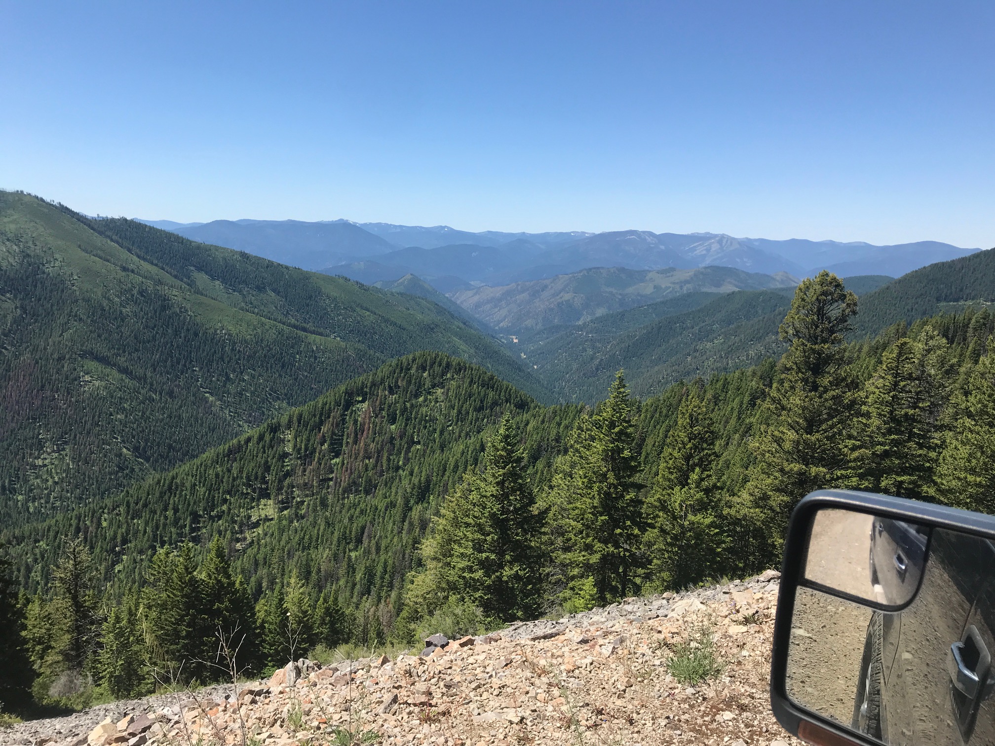 Driving the route to the "trailhead" involves a 21 mile stretch of Forest Service roads that takes you within a thousand feet of the summit. Take Forest Service road 412 that starts at Montana highway 135, just south of Quinns Hot Springs. 412 intersects with Forest Service road 97 that takes you to the summit. See link below for the map of this route. These are well maintained roads but Four Wheel Drive is highly recommended. Some rocky spots and deep potholes from the rain. Allow 90 minutes to drive this.