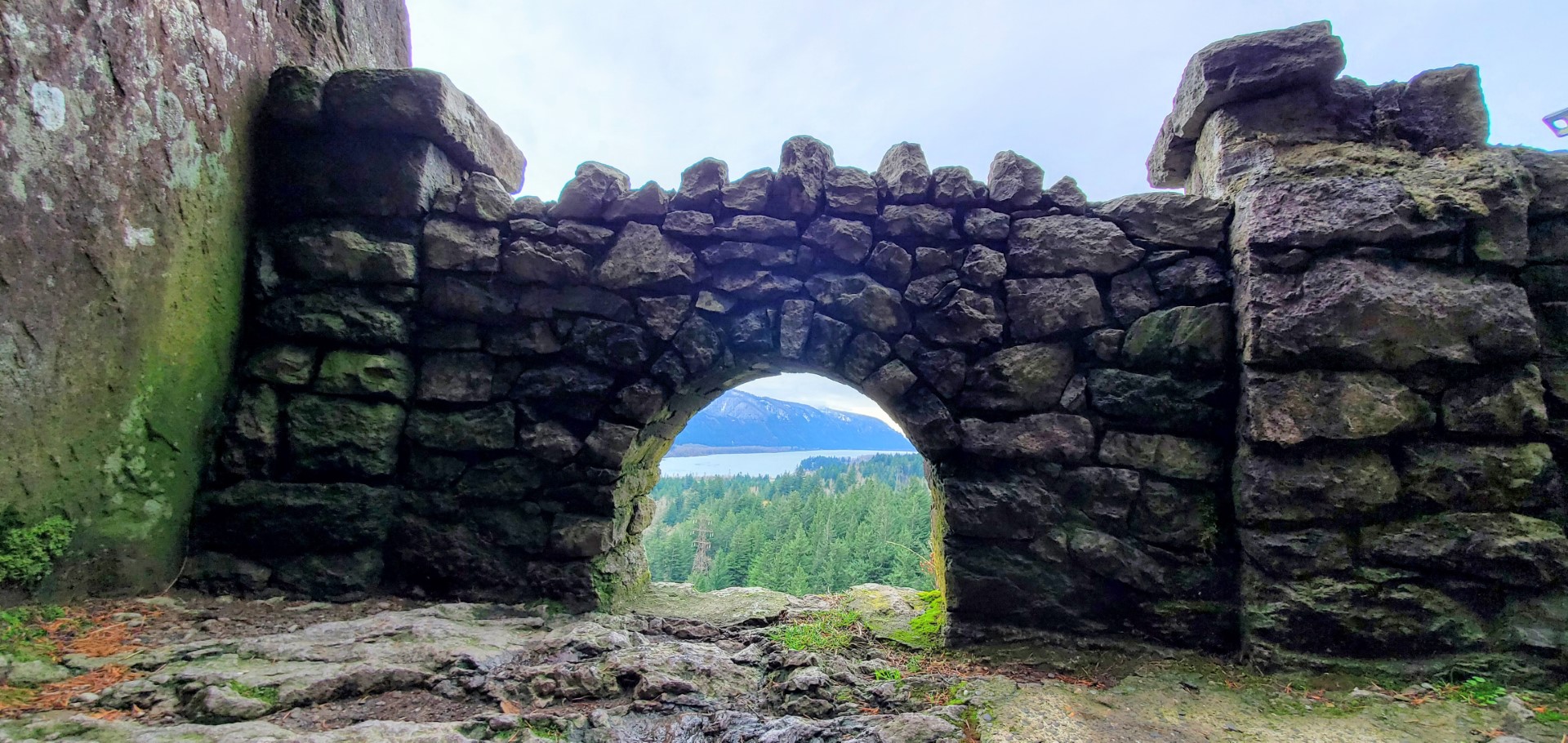 It was a nippy but dry day when KJ7UIZ and I headed out to activate several summits along the Washington side of the Columbia Gorge. We arrived at Beacon Rock State Park. It has two parking areas along Hwy 14, one across the road from the park service office, and one just to the east that flanks the rock climbing walls and has a restroom. Bring your hand warmers, as the water is COOOOOLD!!!