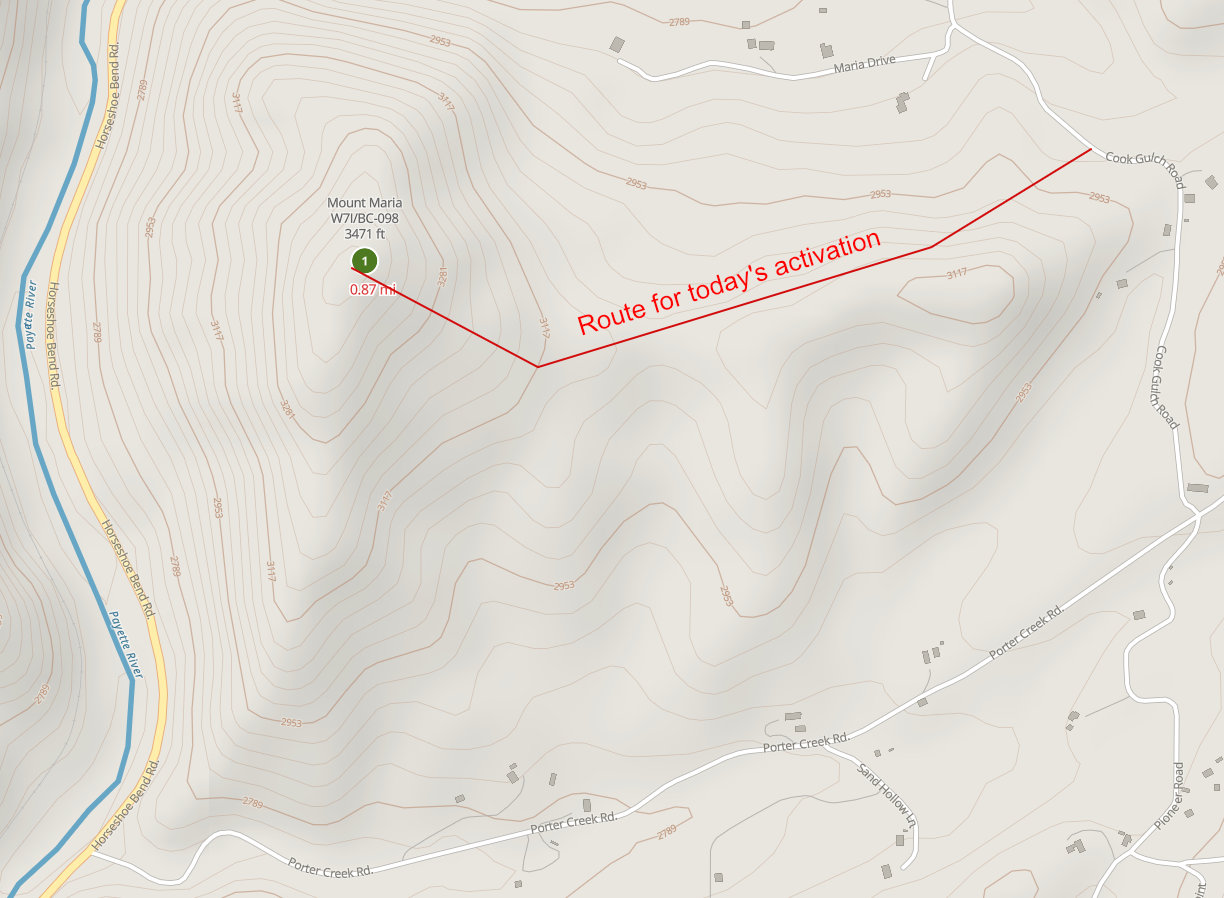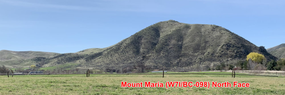 Yesterday's SOTA adventure took me to the top of Mount Maria near Horseshoe Bend, Idaho for a first time activation.  The hike up was right at 1 mile in length and took about 45 minutes.  The last section was very steep, so had to slow down the pace quite a bit.