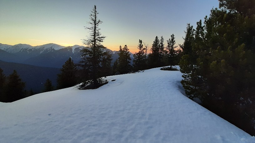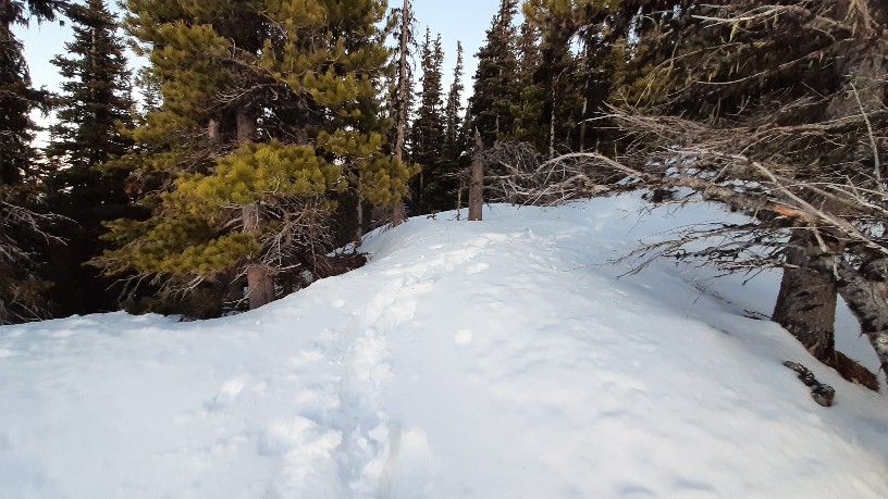 I didn't see any other human tracks, until at the summit. There I saw one set of boot and ski tracks going/coming from the north.