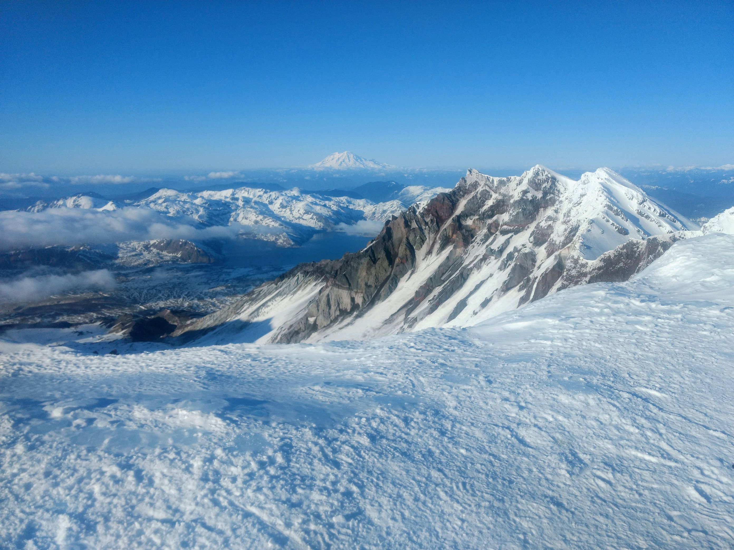 I used my Bothy sack from Summitgear.co.uk to stay warm--it works amazing. It allowed me to stay long enought for the highlight of the trip--a summit to summit with my wife. She (WE7CAT) was on Mt St Helens (W7W/LC-001) for her first solo activation. She was too shy to talk on the radio last year when we climbed it, so I gave her a script to read and she did great--3 contacts with folks from Portland using her Anytone 878 with stock antenna, and she said I was 59! She probably could have gotten more than 4 contacts, as I heard others calling her. But it was 1800 when she got to the summit, so she was in a hurry to get down. And there was ragchewing on 146.52 out of Portland, so she was having trouble breaking in.