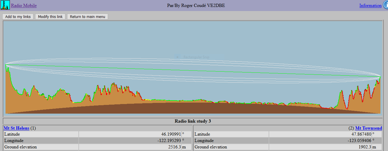 I was able to talk to folks (Mark and Bob) from Port Angeles and Sequim via 2 meter with my 3 element yagi I took the 3 elements off my Arrow and put them on homemade mounts on my ski pole to save the weight of the boom. I was able to talk to my parents in Centralia, WA also. Got great 20 m and 40 m contacts with my end fed trail friendly and MTB3 on CW.