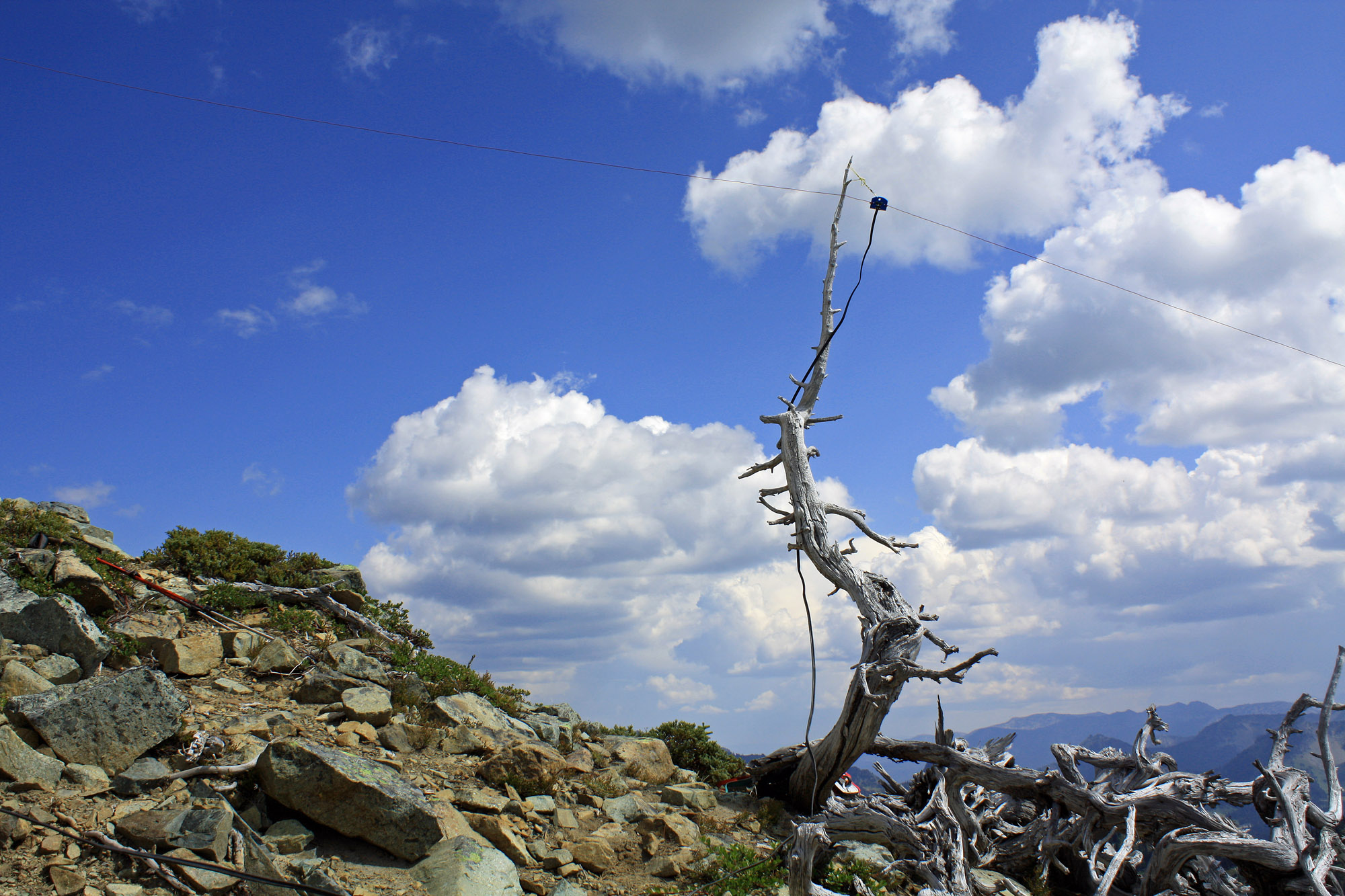 I had left my 21 ft carbon fish pole antenna mast in the car and became concerned that I’d have to make radio contacts with the antenna strewn on the rocks. The problem was solved with a scraggly dead tree about 6 ft high that became the apex for my Dan’s 44 ft Doublet antenna.