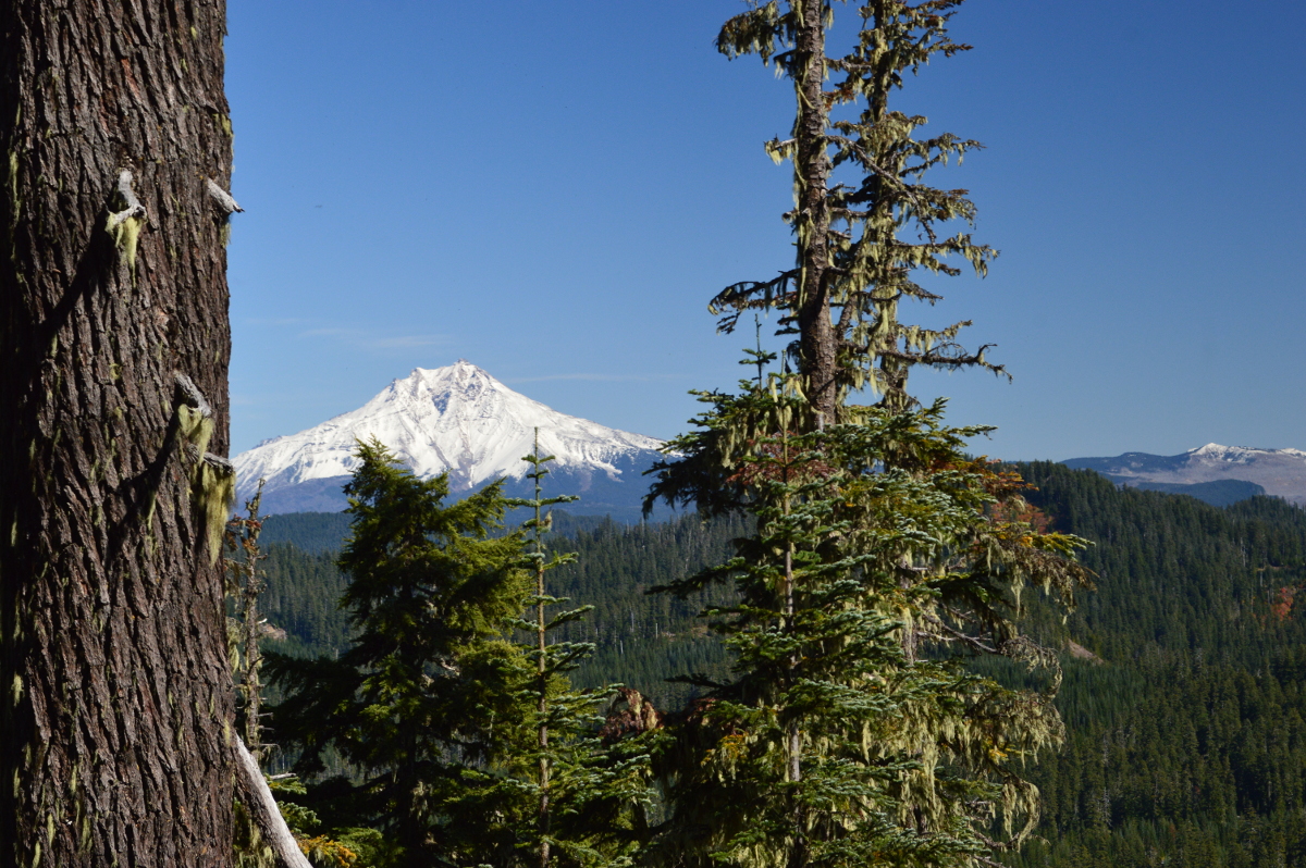 Parking at trailhead is limited to 2-3 cars but it doesn't look like this trailhead gets much pressure. The distance from the trailhead to the peak is probably 2 miles, steep in short sections and heavily obstructed with bushes and downed trees in spots. There is a false summit so make sure you keep going until you have reached a series of short steep switchbacks that are below the real peak. Reaching the actual summit from the trail is relatively easy and I'm guessing it is about 1/8 mile from the trail to the top. There are several tall trees at the summit perfect for antennas but they obstruct the view of Mt. Jefferson and Three-Fingered Jack to the east.