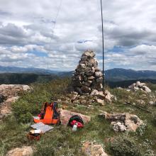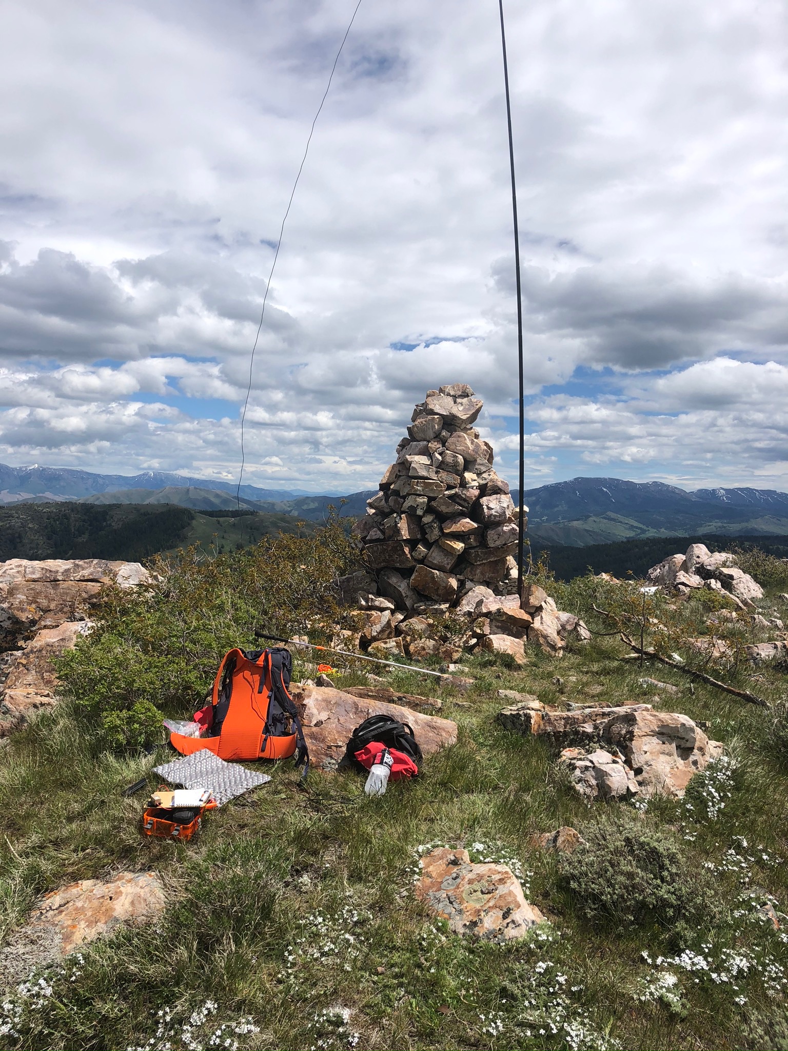 This summit is located South of Pocatello Idaho. Take Bannock Hwy through Pocatello to Gibson Jack Rd which will take you to the Gibson Jack TH (see W7I-SI-153 Writeup below). Trailhead parkinglot has recently been paved and has nice Forest Service vault outhouse. Trail is dog friendly with doggie bag dispensers located at beginning of TH. Take trail 7014 single track approx 5 miles in a Westerly course which later turns South for approx 1/2 mile to what we locals call "the Pink Gate". After going through the gate proceed about 200yds downhill until the trail intersects with Elk Meadow trail. From there take a right in a Westerly direction approx .50 of a mile. Watch for a old FS trail to the North barely visible. Watch for will the corner of the fence line . Follow the fenceline about a mile, all of which is uphill. You will see a bobwire gate 3/4's of the way to the summit. Go through that and bushwhack to the summit. Try to keep on the ridgeline. Once at the summit there is a rock cairn you cannot miss.