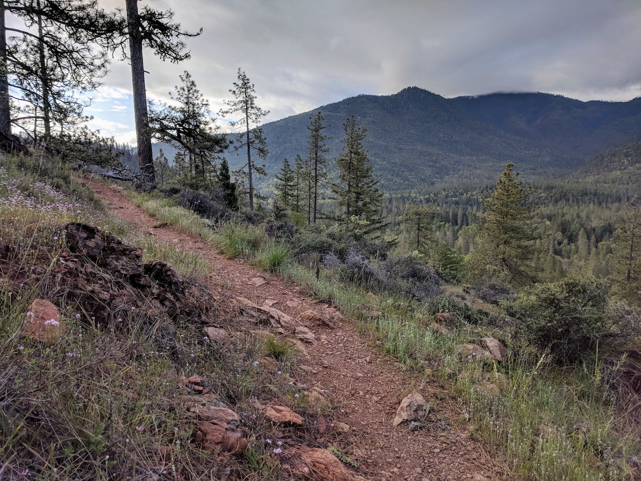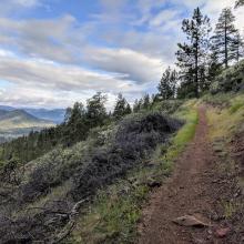 There is a trail to the top of Bolt Mountain from the Fish Hatchery County Park trailhead, though it’s not always quite so apparent. The key is to follow signs for the “multi-use trail”, though there is one tricky turn at 42.357706, -123.412432. I missed it and added a mile or so to the hike.