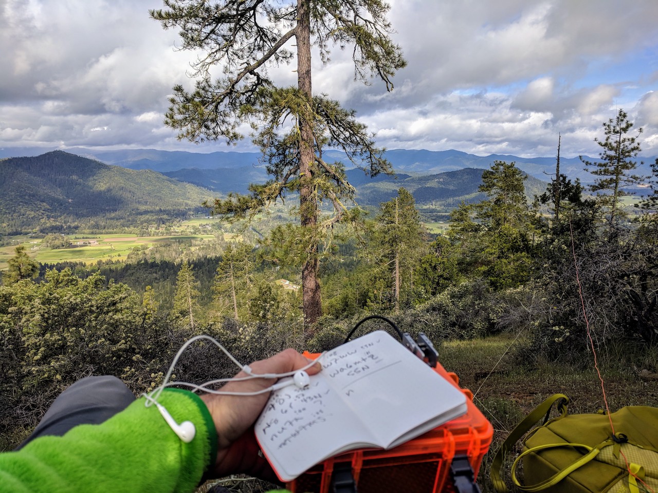 I had cell service so I spotted myself and got my first contact pretty quickly. I logged five more over the next 15 minutes, and then it was time to head down. I did end up jogging most of the way down, testing my pack and kit for running for the first time. I was way late for the family event, but the fine hike was well worth it.