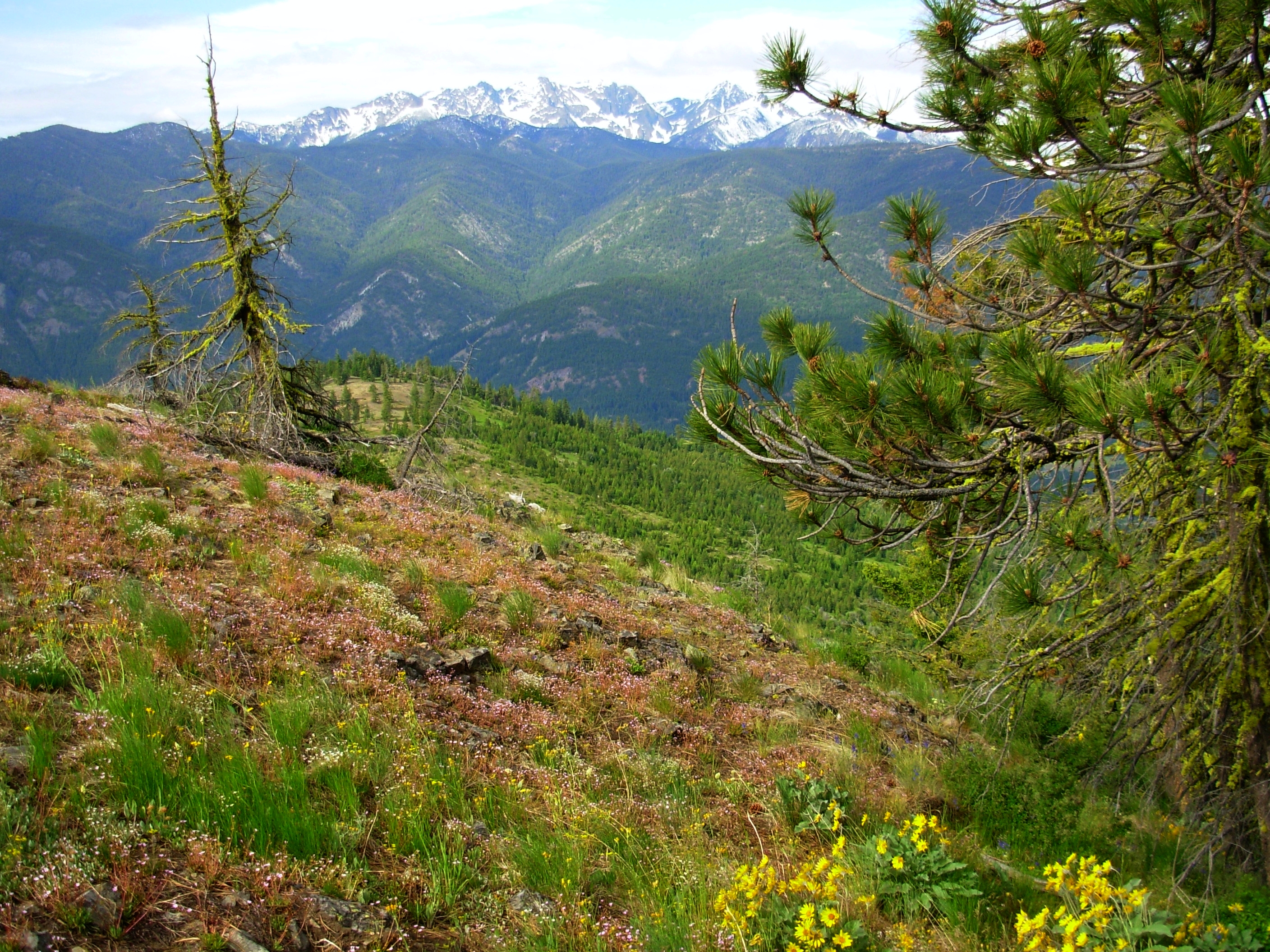 When you consider this peak for an early season trek, think "beautiful flowers, peaceful solitude, and great views". Early in June this year the hills are festive with colorful wildflowers. There is no trail, no signage, no parking lot... no hikers! And finally, the view - an unubstructed 360 degree view of green valleys, and snow-capped mountains. If you're comfortable with a little cross-country navigation, I recommend this one.