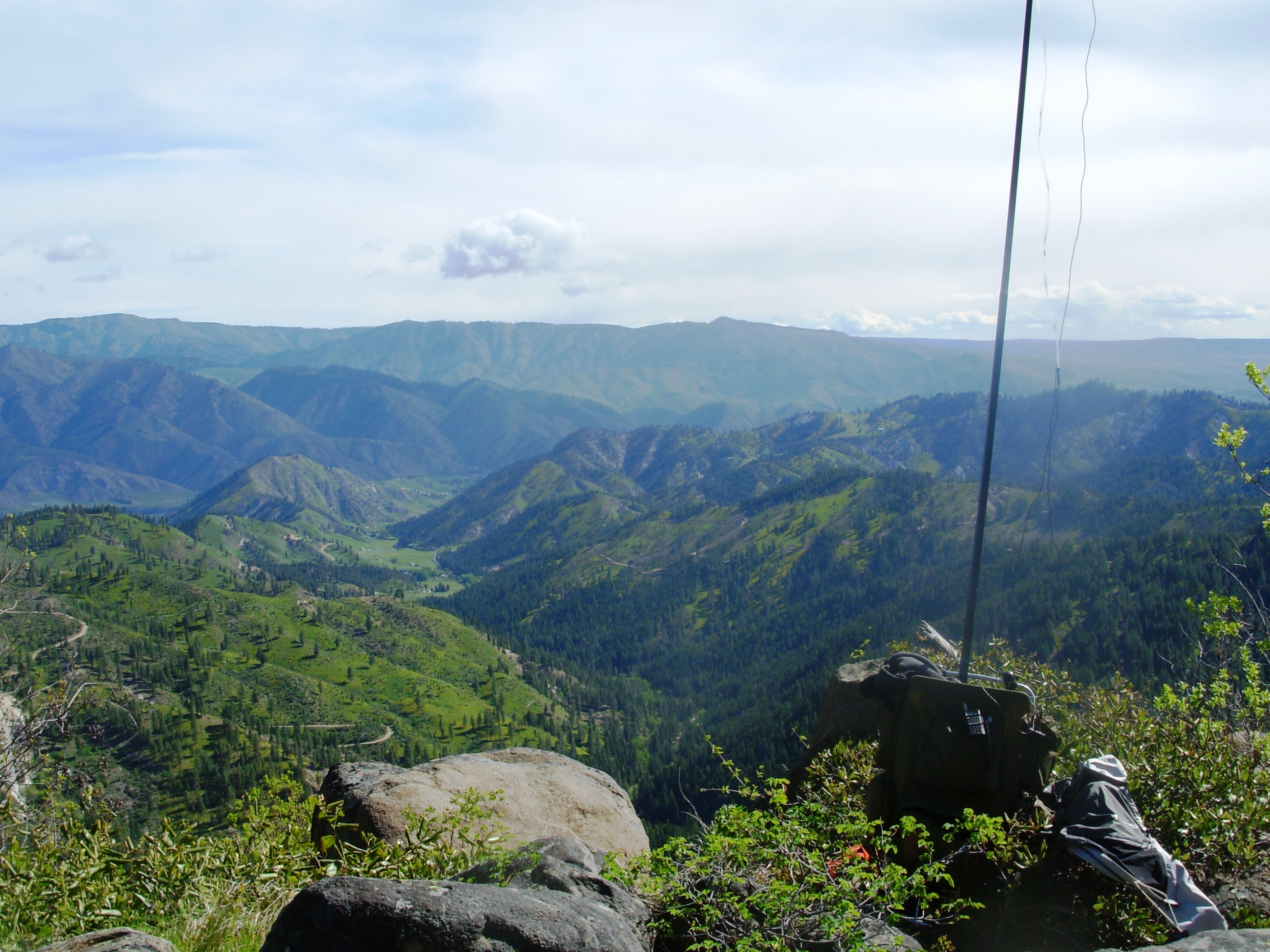 This is an easily accessed peak in an area that's currently undergoing logging activity. We went up on a Saturday and had the place to ourselves. The peak and ridge is rocky with a few trees and lot's of deer and elk sign. There is a pleasant view mostly to the east. The activation area is large with plenty of room for a dipole antenna.