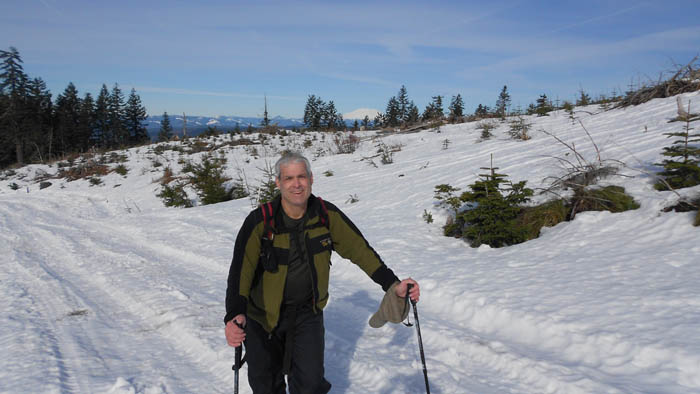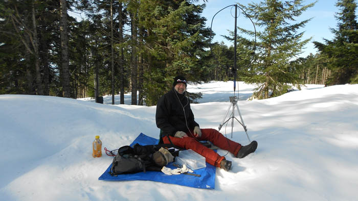 K7ATN and N7LKL activated Washington's Larch Mountain on Saturday, 2/2/13. We hiked in on the forest service road from the west side, starting near the Larch Corrections Center (directions below and find the eastside approach here: https://www.wta.org/go-hiking/hikes/larch-mountain-silver-star.) We were able to drive up the service road quite a ways but hiked the last 1.5 miles with approximately 1200 feet gain. Weather conditions were excellent - sunny and not too cold. We were on the summit from about 10:00 to 1:00 during which time the sun softened the snow considerably. The summit itself doesn't have any views to speak of, but on the hike up you get excellent views of Portland, Mt. St. Helens, Mt. Adams, and Mt. Hood.