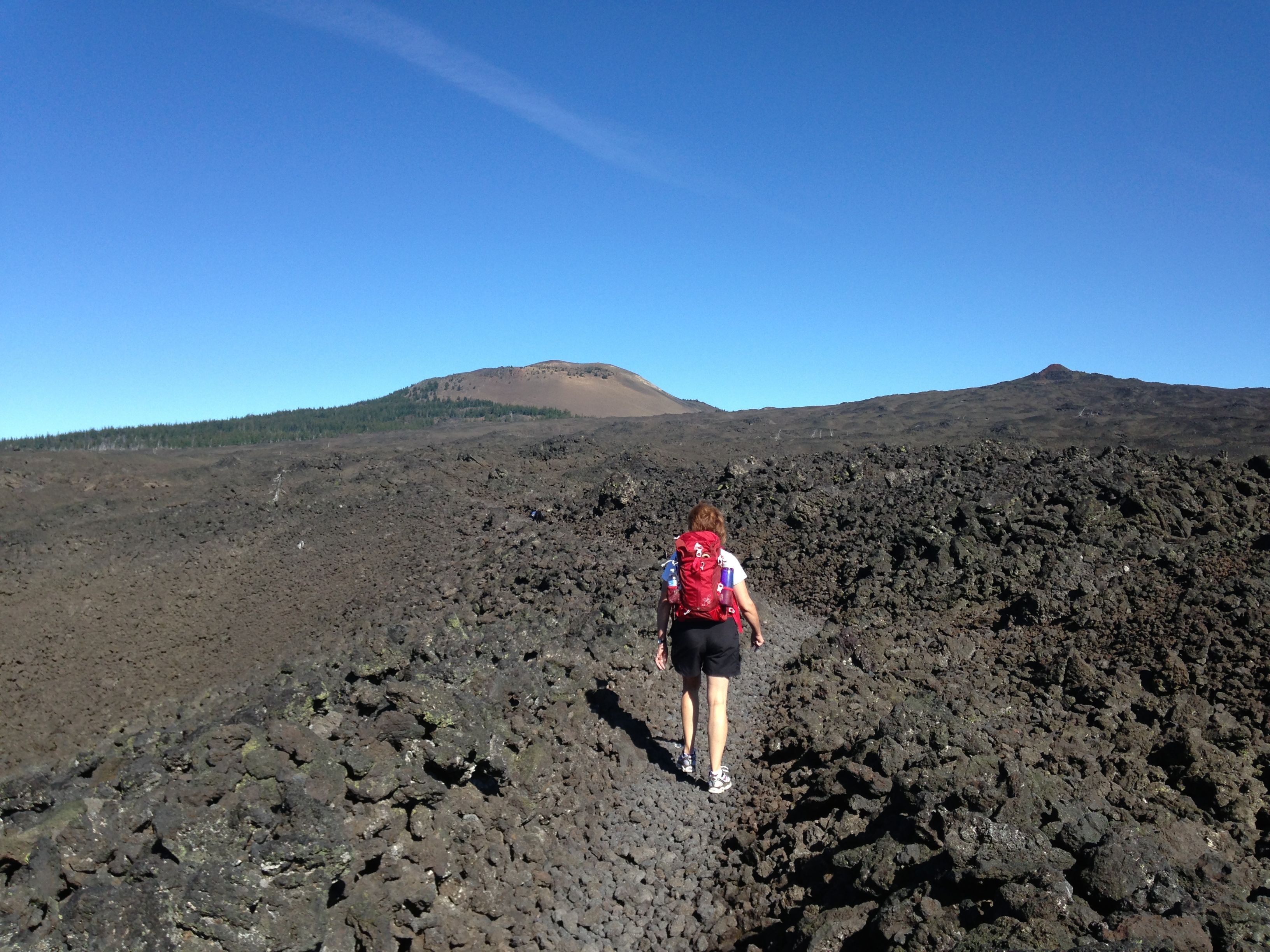 This portion of trail is primarily through a lava field. Sturdy shoes are strongly