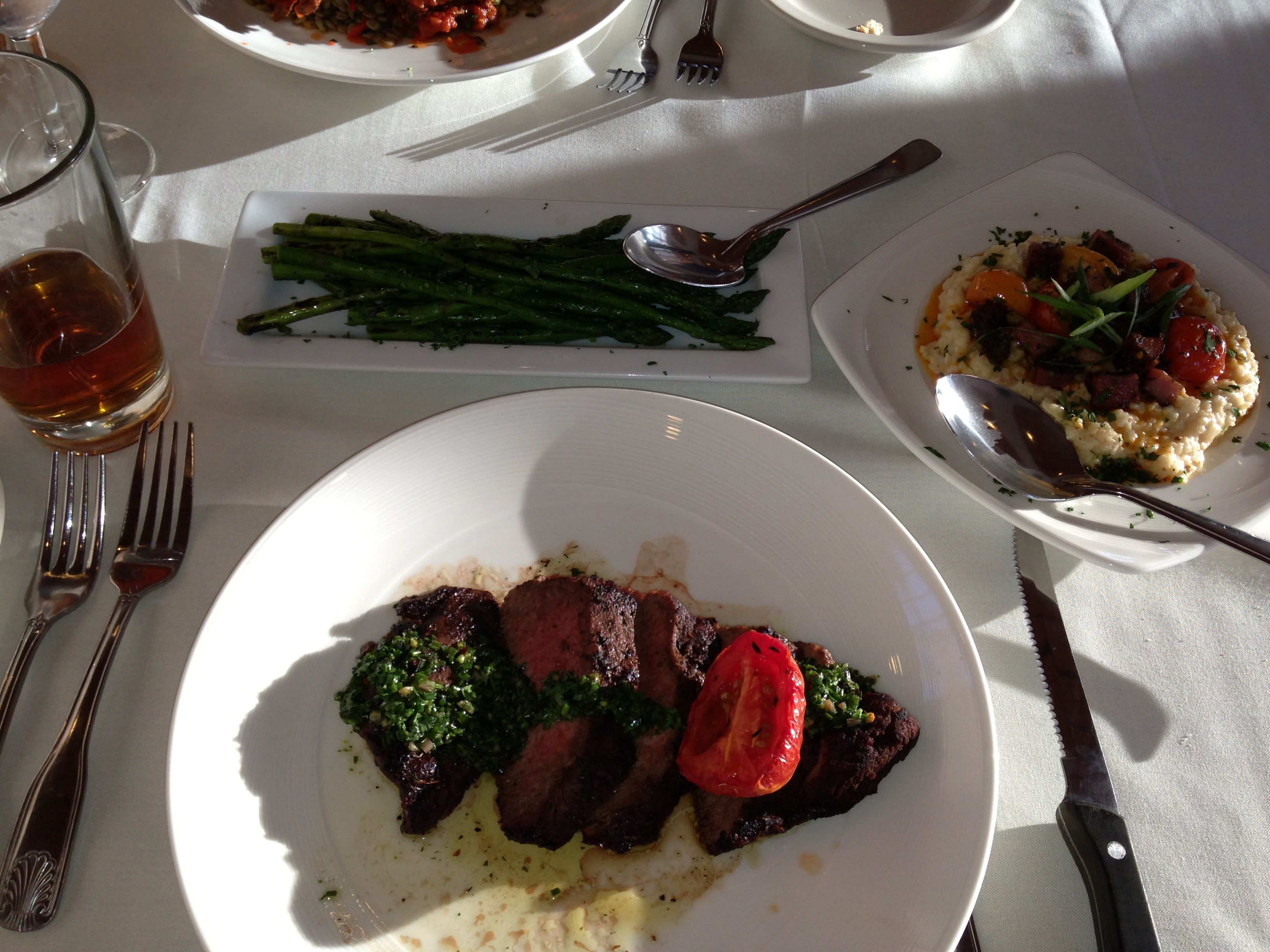 the Chimmichurri Flat Iron Steak with Blistered Asparagus and Creamy Tasso Grits.