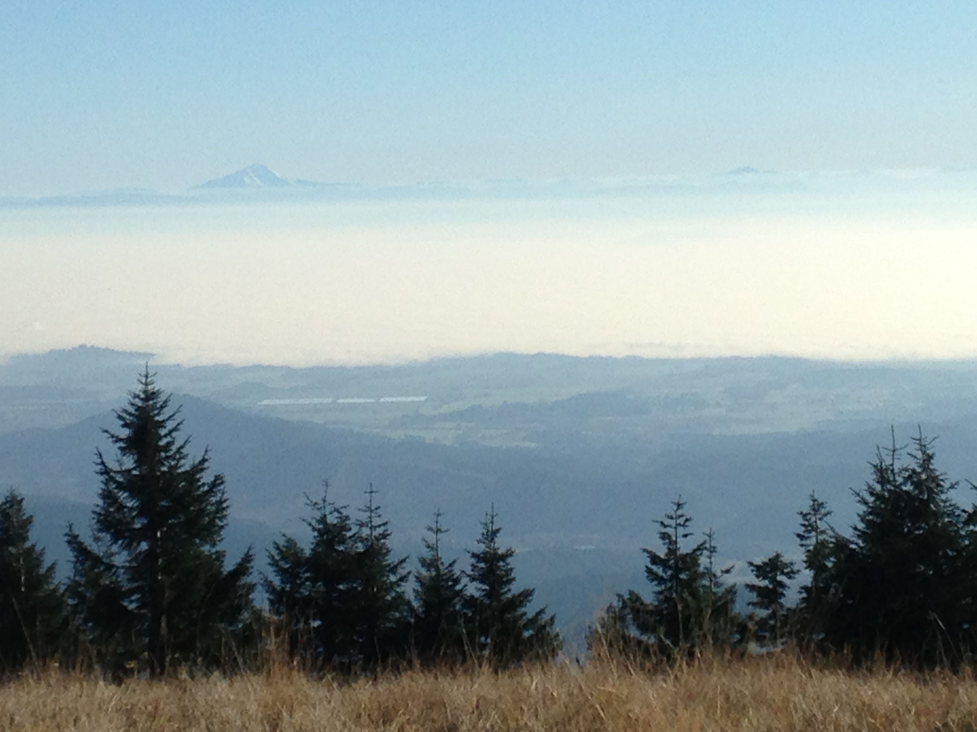 Marys Peak is the highest point in the Oregon Coast Range. At 4,097ft, it has a clear shot in all directions. On clear days, the Pacific ocean can be seen. Today, the Cascades were clearly visible, including at Mt. Hood. It is reached by FS road 30 off of Oregon Hwy 34, about 15 miles west of Corvallis. It is a very nice drive to the parking viewpoint at about 3770 feet and a short 15 minute walk to the summit proper.