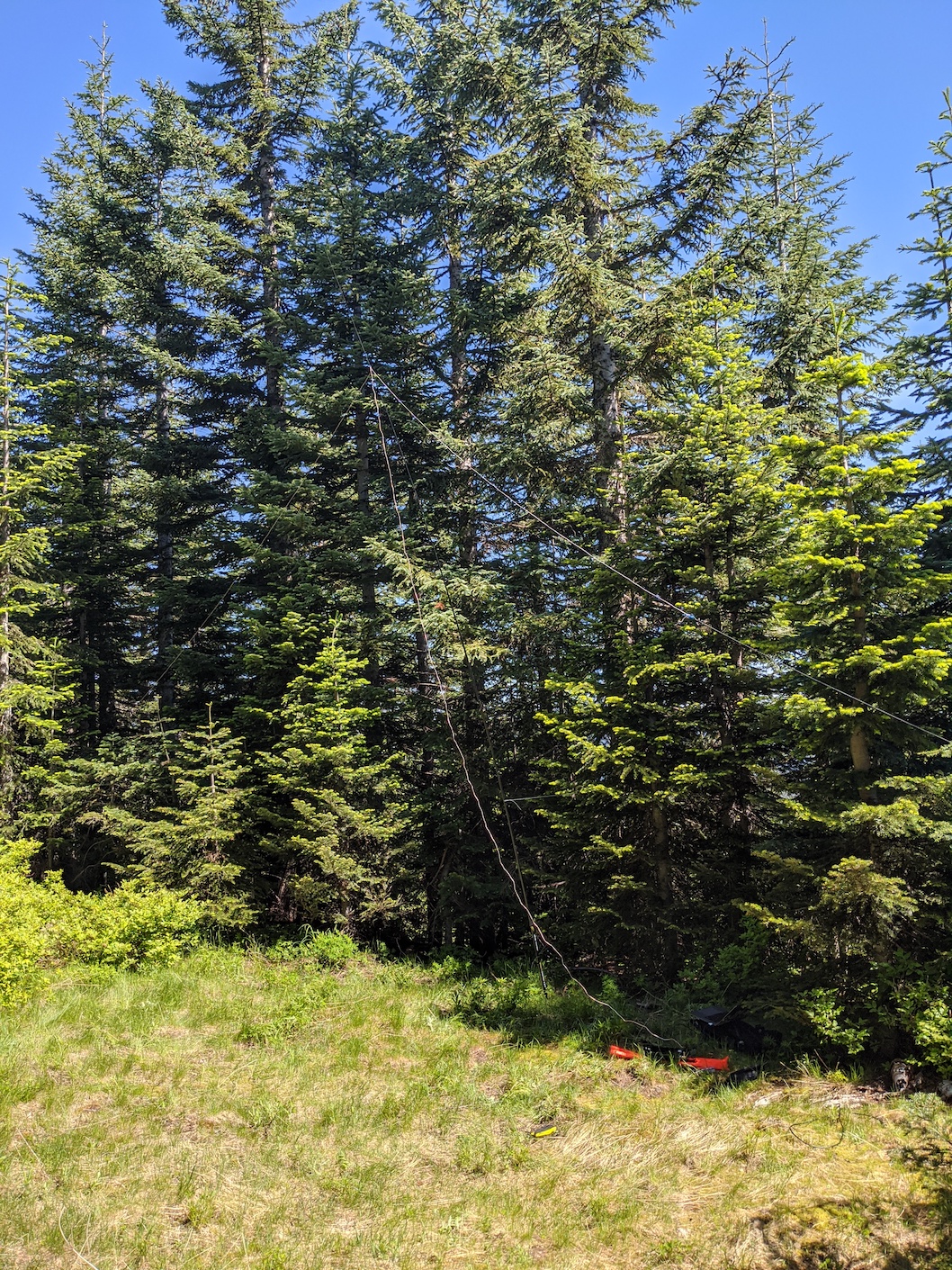 I believe the end of road 8303341 is inside the activation zone, but just 50' in the trail from the road is a nice little clearing, which has better grass for sitting on. I got set up here. I had some frustrations with my antenna (speaker-wire dipole for 20m) for about 20 minutes, eventually re-orienting it a bit, and also removing a patch cable from the mix. Once I got that straightened out, I was able to make 5 QSOs on 20m FT8, earning my first SOTA points with a first activation of this summit. I then headed down the hill, back to my 4runner, and made my way over to Lone Butte for a 2nd activation of the day.
