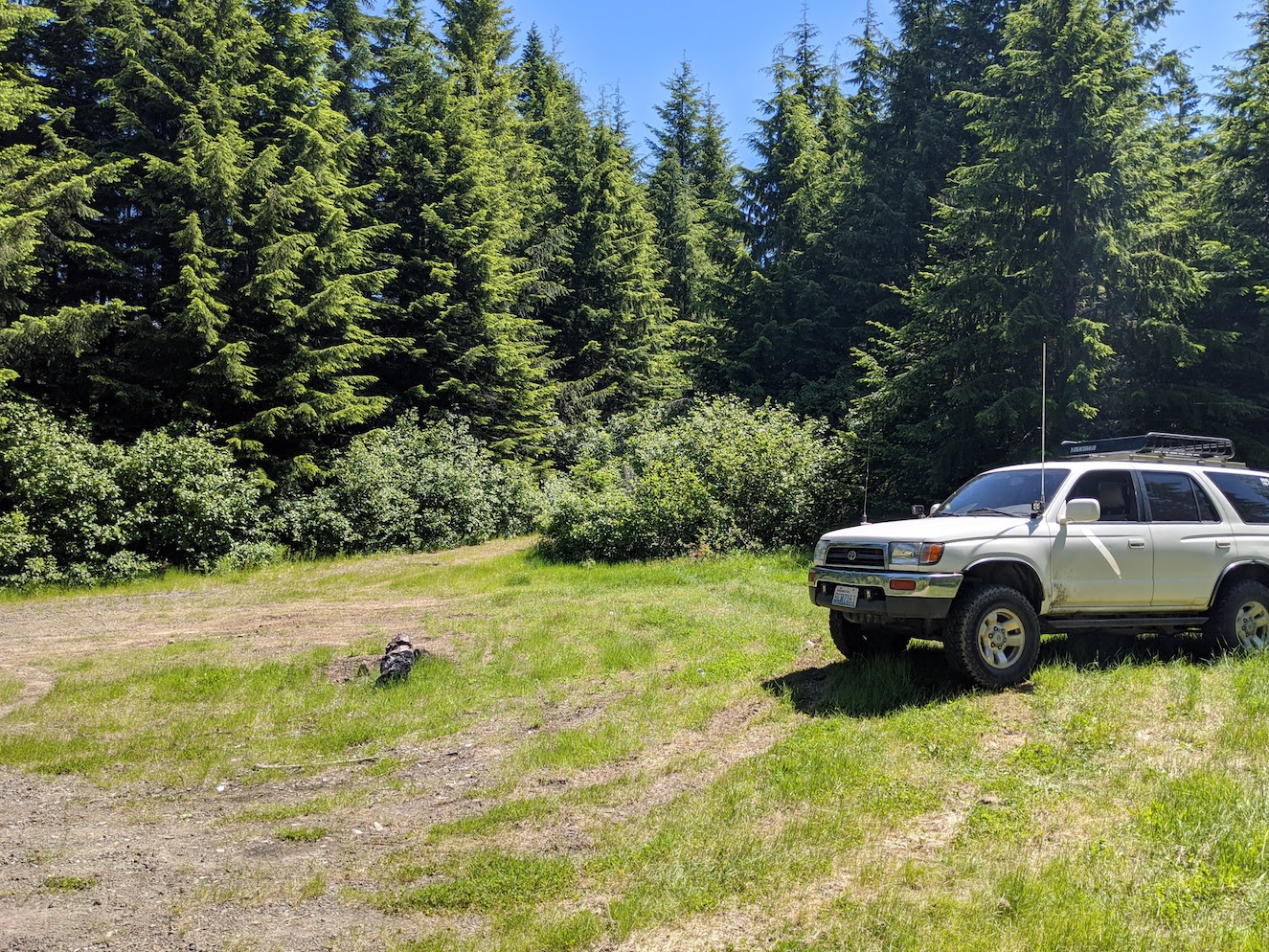 In a normal year, this would be an easy 4-point drive-up. Driving access is via Forest Road 8303 (Ape Cave Rd.), 8303340, and 8303341. From the end of 8303341 the summit is ~500' to the NW, where the trail ducks off the ridgeline you would just continue straight to the summit.