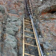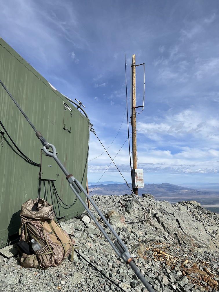 I parked at the comm tower halfway between the radar station and the summit as others before me had and hiked the remaining short distance. There are 2 metal ladders to be climbed to the top and then a very small area to put up a HF antenna. There is a military-style container taking up the middle of the summit and I could only fit my 20m EFHW by tying my mast to the telephone pole on the one side and the container on the other. Nevertheless, I was able to make QSOs in relatively short order and headed down. 2m was pretty much dead, with only one contact from XYL.