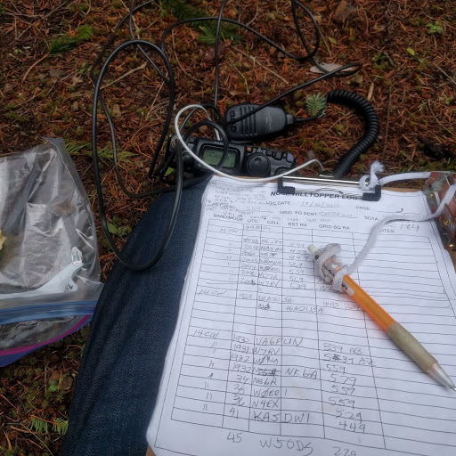 While I've been using my W1SFR commercial end-fed-and-balun, this time I went back to my old standby: Three endfed wires and the estimable Hendricks "SOTA Tuner." My impression is that I get better reports, but haven't done an A/B comparison from one site yet.