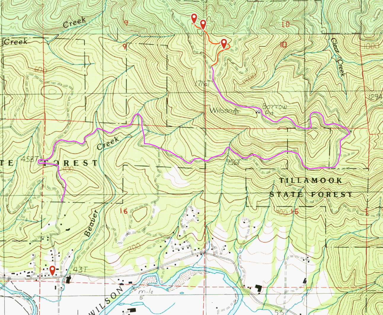Get yourself to the corner of Sollie Smith Road North and Aldercrest Road. If you've ever visited the Tillamook Cheese factory and gone back home "the back way" up Latimer Road onto Wilson River Loop to Hwy 6, this is very close to the bridge turn. Proceed North on Aldercrest Road 1/2 mile until the pavement turns to gravel and continue up into the hills. The rest of the route is mostly the "main road"; I took the routing provided by Gaia and it was accurate. Starting from the transition to gravel: