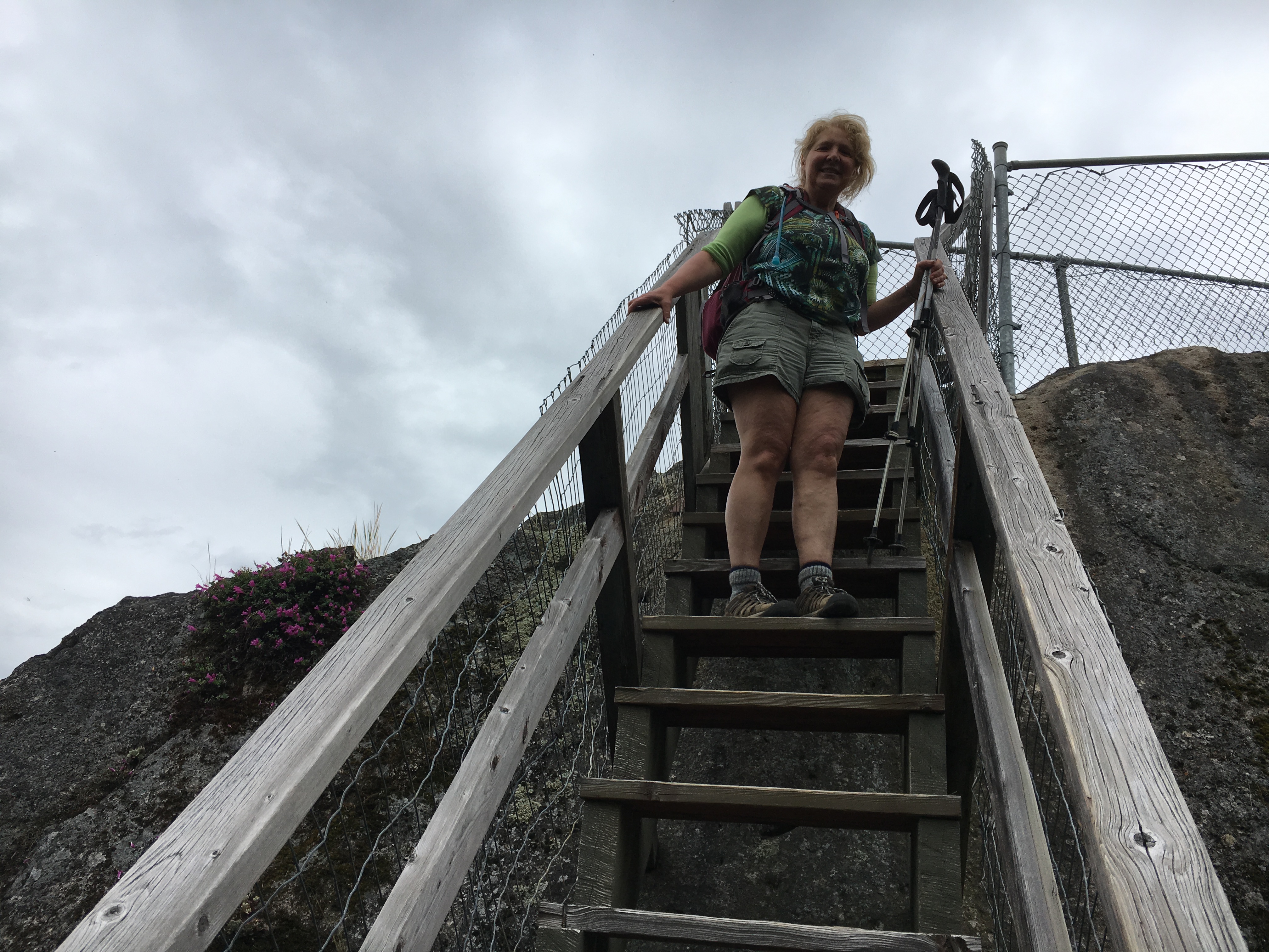 The final stairway climb to the lookout could be unnerving for those with height issues. Antenna masts can be attached to the bridgeway.and catwalk, as I did. The views were great. The wind sure whipped my carbon fiber mast around, but I had no trouble getting the needed contacts.