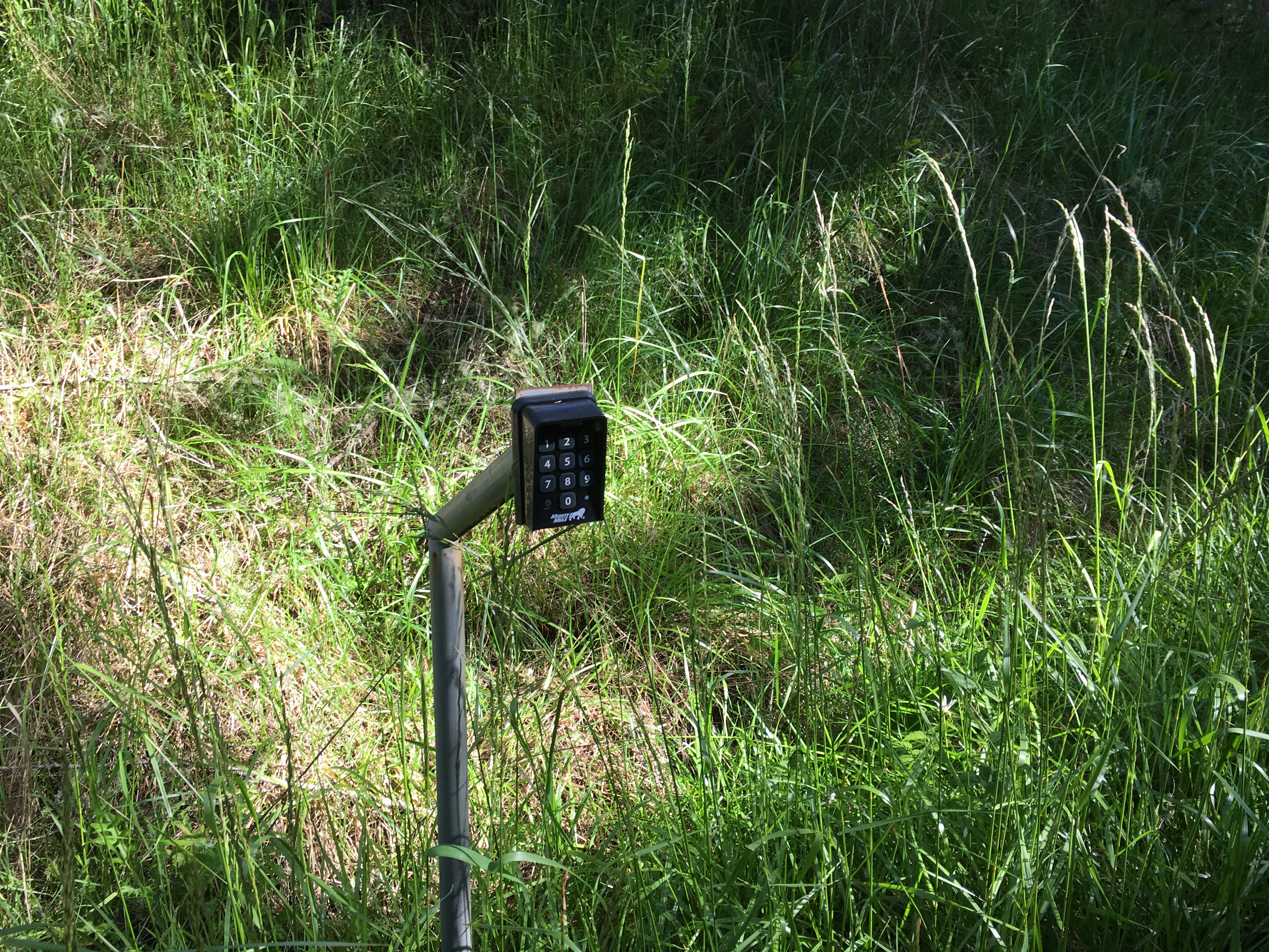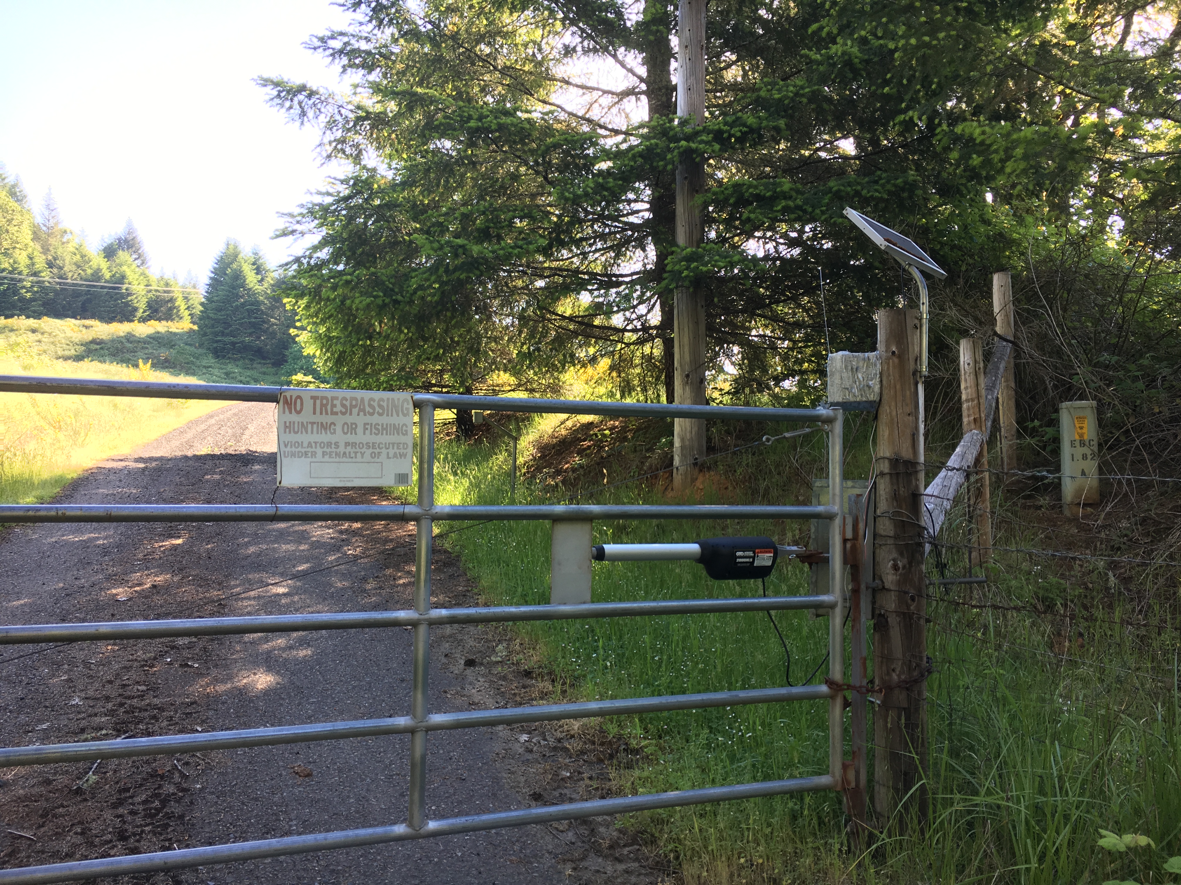Unfortunately, it was gated off with a motor driven gate and support electronics (keypads, solar panels, antenna links, a buzzer that sounded as I got close, etc.). Someone did not want us up there! The USGS map did not show other roads to get there. Scratch the first one off the list.