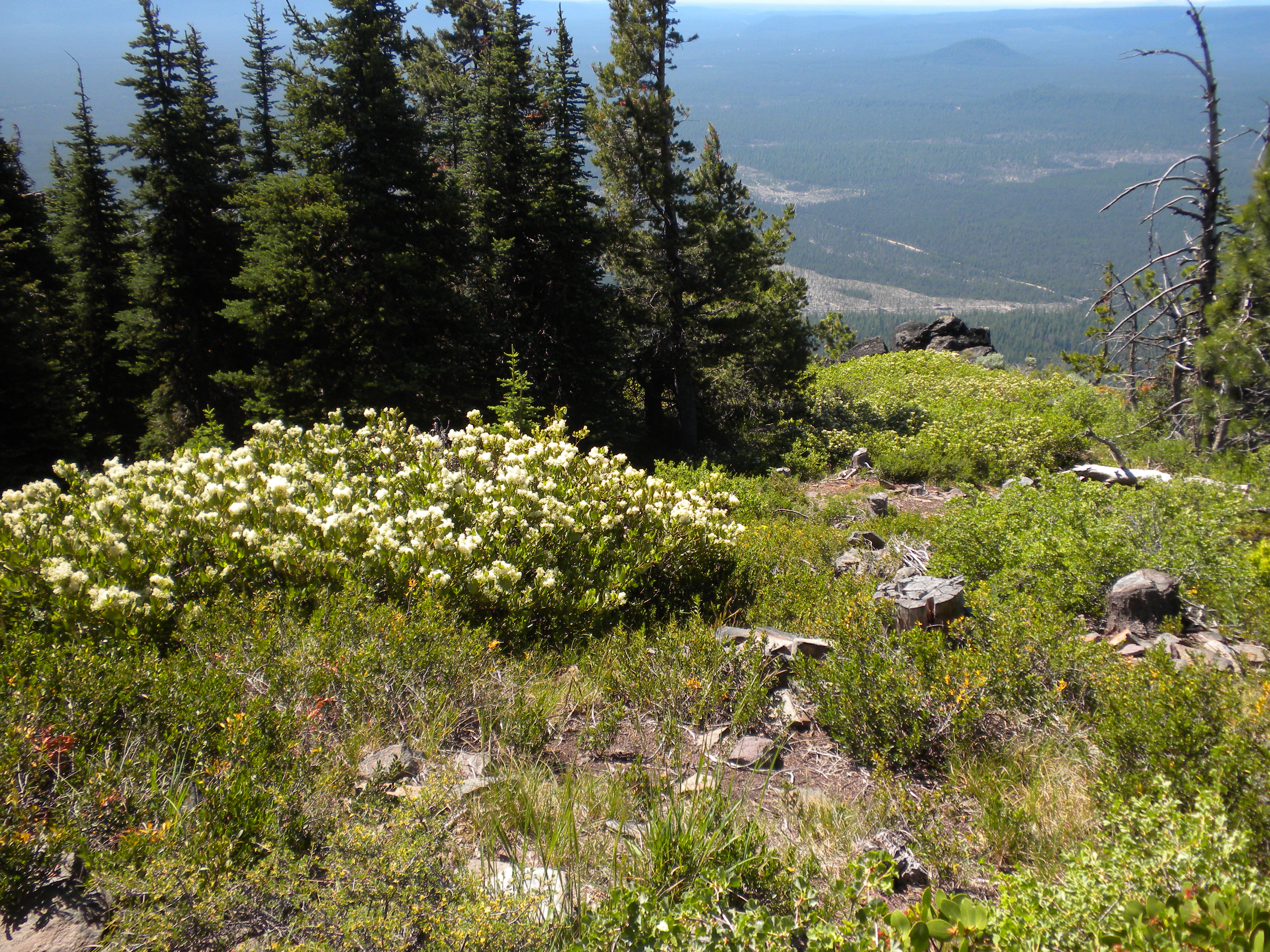 Odell Butte is a 7032 foot high volcanic cone in central Oregon. It is easy to get to and provides great views. The summit has an active fire lookout, an outhouse and a picnic table, along with RF installations. It is an easy 6 pointer in the summer.