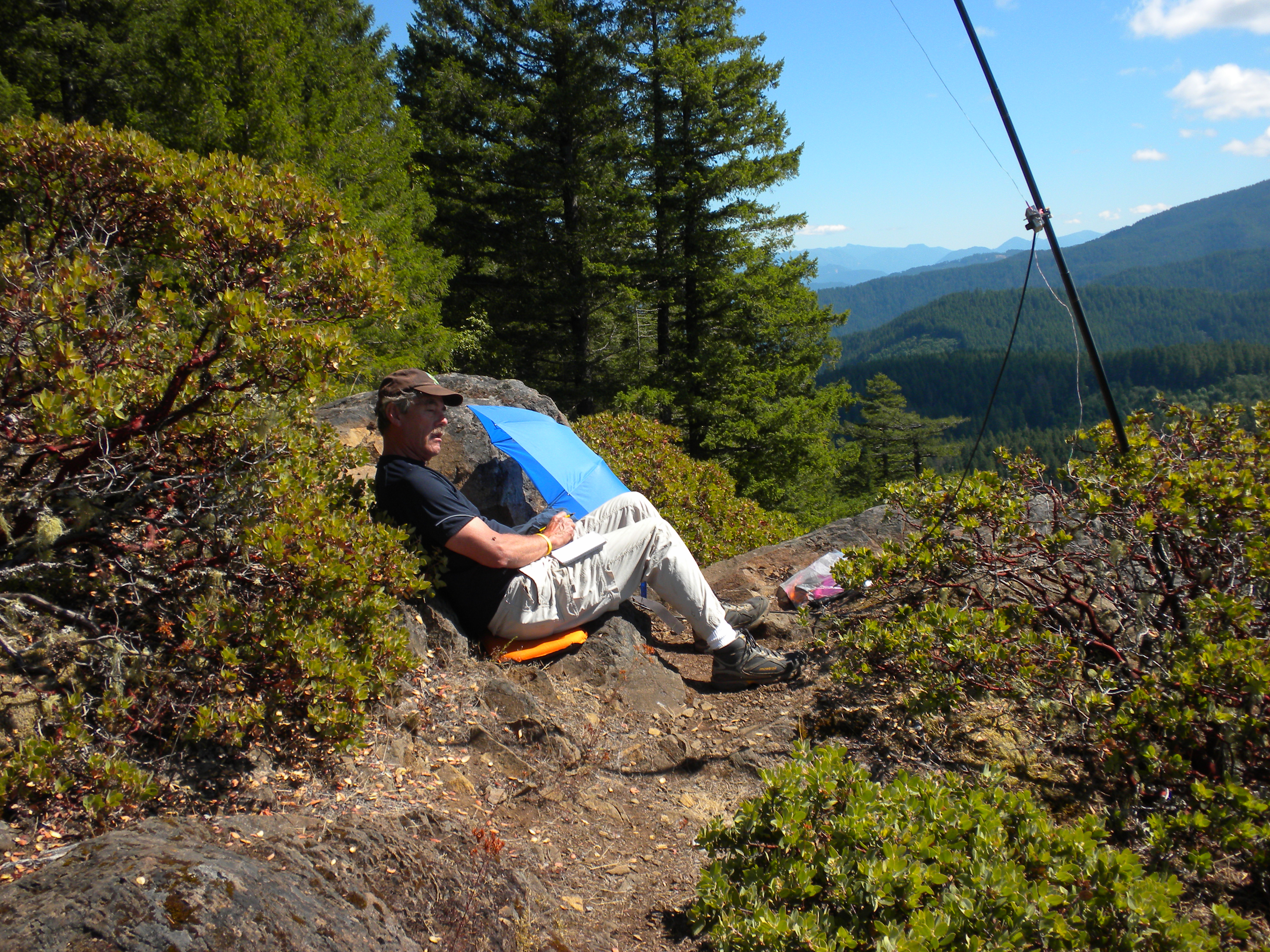 On August 29, 2012, Guy, N7UN, Annaliese, NH6Z and Phil, NS7P, activated Eagles Rest in the Willamette Valley foothills of Lane Co, OR. This small summit sits at 3024' ASL (1725' above the trailhead). It is exposed rock surrounded by forest.
