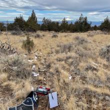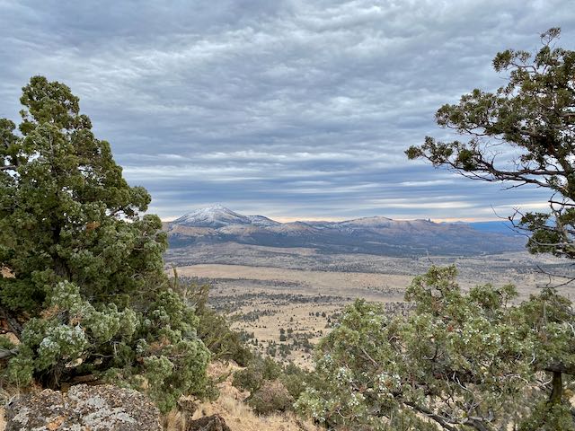 The map below shows the route I took.  There are other ways, but hiking up from the west, parking just off the Old Culver Highway (dirt Rd 44.4601, -121.1895), is the most direct.  This route is 1.8 miles up to the AZ with a climb of just under 1000 feet.  There are two barbed wire field fences that you’ll need to cross, but I was able to find places to crawl under them with no problems.  Again, this is all on public lands.