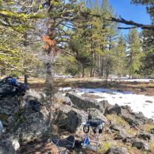 Highland Flat is located in the Ochoco National Forest, approx 15 miles north of Priveville. In April 2019 I completed a first-time activation of the summit which is suprising since there's very good forest road access up to near the activation zone. My activation was more challanging due to snow which resulted in a 4-mile snowshoe hike. But this is usually an easy 4-pointer and recommended for anyone visiting the Prineville area.