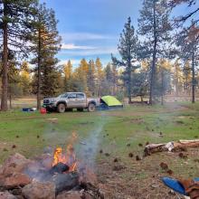 Highland Flat is, well, very flat. This makes it ideal for dispersed camping and it can accomodate family and groups easily. If you're looking for a place in central Oregon to take a group for activating, this is a good one. I went back up here in early May for the 7QP.