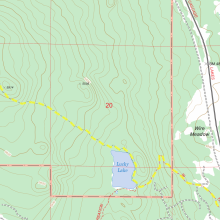 Much of the hike is on established NF trail except the last half mile, which involves a moderate cross county climb up 350’ to the summit. The map below shows the basic route I took. Lucky Lake is along the way and offers a very nice water break - great for swimming during the summer.
