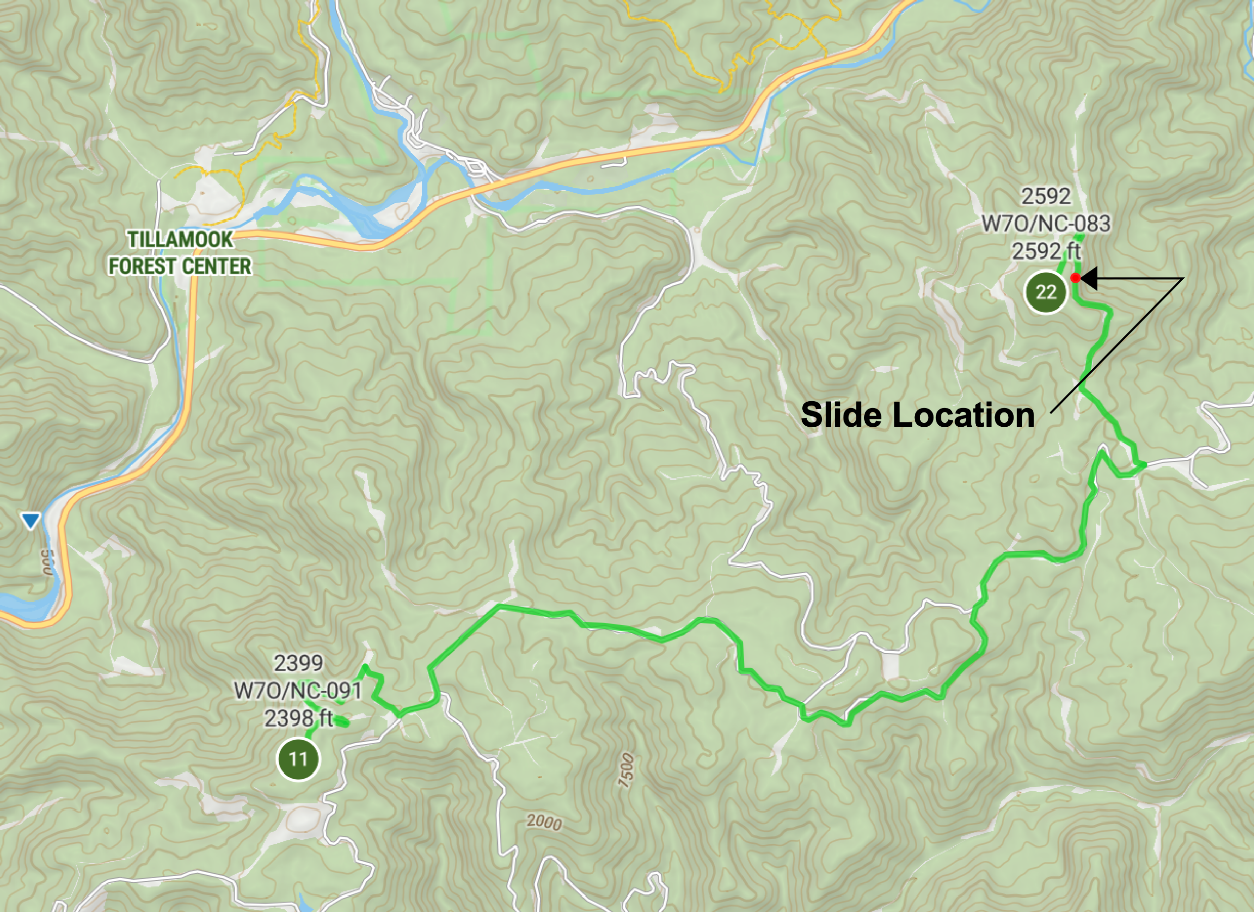 Heads up… on Jan 10, 2026 when driving from W7O/NC-091 to NC-083 (as noted in the prior descriptions) I came across a slide located along the southeast side of the mountain - very close to the final turn up to the NC-083 summit. I had to backtrack and take the logging road that wraps around the north side of summit. Not sure how long this route will remain blocked, but it may be a low priority to clear.