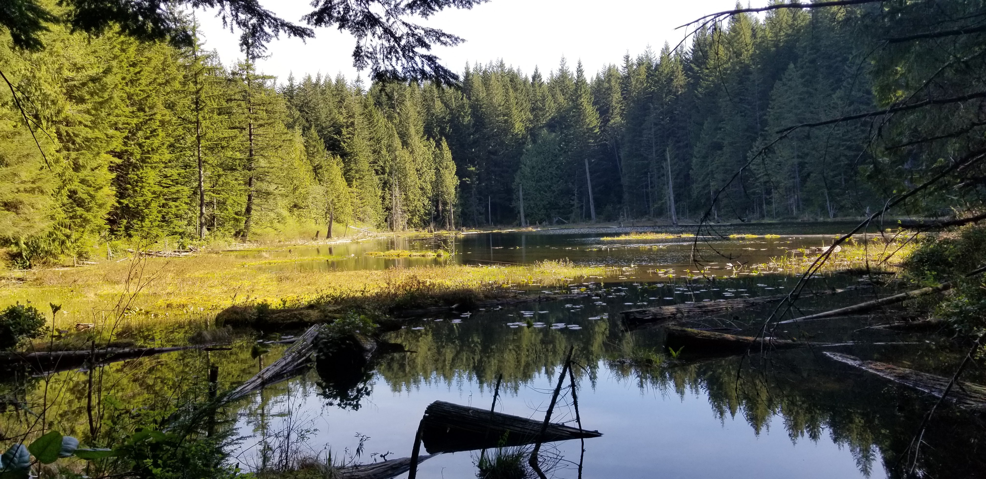 From I-5, take exit 240 (Alger) and head west on Lake Samish Road.  In about 0.5 mile, turn left on Barrell Springs road and travel 0.7 miles to Blanchard Hill Trail Road.  Turn right onto Blanchard Hill Trail Road, and travel 1.7 mile to the upper parking lot.  (Of note, there is a restroom at the lower parking lot, but not at the upper lot).  From the upper parking lot, the Lily Lake trailhead was just south of the parking (and you would have just passed on the left driving to the upper lot).