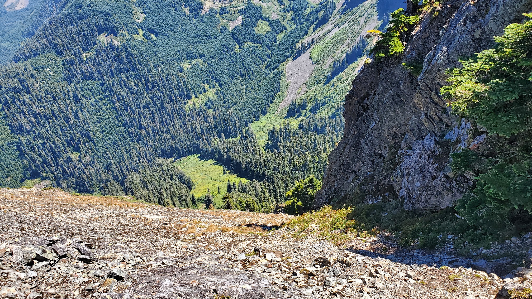 A few SOTA Goats have completed this summit multiple times, and some hiked prior to SOTA.  One good humored tip for this summit from a Goat was "just don't look down". (-:  Another SOTA Goat mentioned they haven't activated due to exposure.  An elemenatary school friend sent me a picture of her holding her small dog taking a selfie with her husband during this section.  I'm relatively new to hiking in the last 3 years, and am more comfortable in situations that I was less comfortable early on.  After a long hike up (next time I might take the shorter hiking option to be less tired), I attempted this section a few times.  Watched as a few others climbed it...and while others chose not to.  Maybe less than 50% of the people who climbed up while I was there chose to continue on to the summit?  In summary, be safe and know your limits.