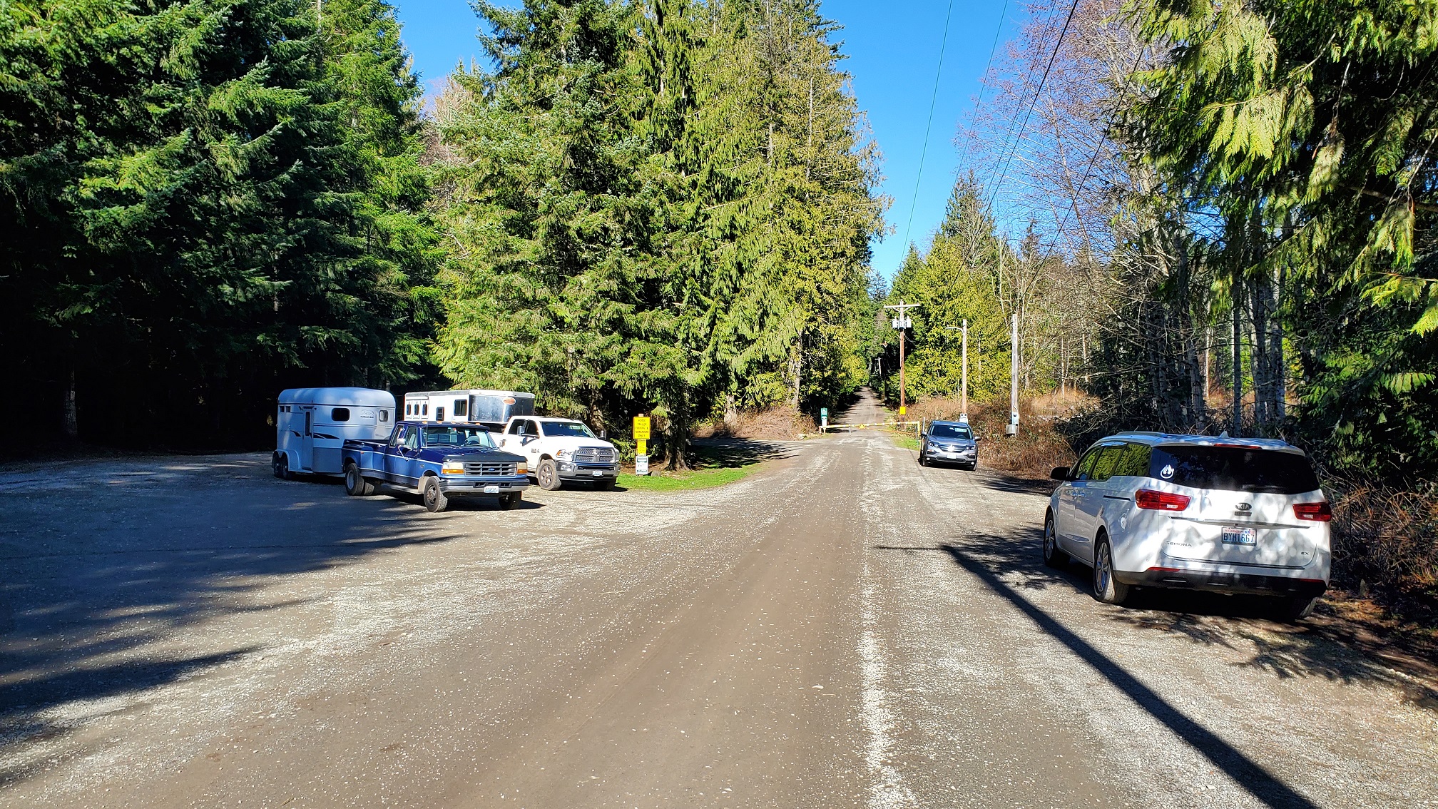 When you arrive at the trailhead, there is an information area where you fill out a waiver form.  Filling out this form is required once each year.  There was parking along the road, and other spots for horse trailers.  On a sunny February weekend, there were quite a few people walking dogs, riding bikes, hiking, and a few riding horses.