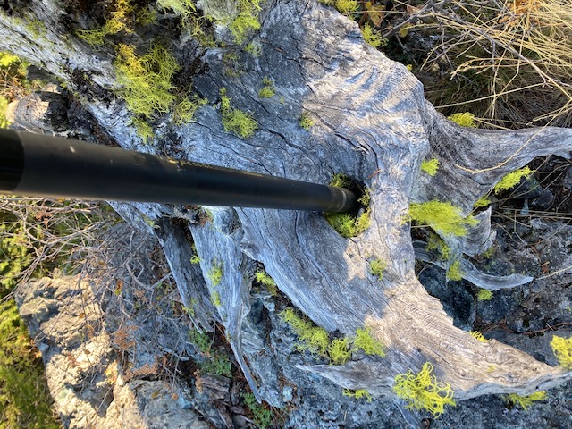 Cedar Springs Mountain is a peak near Grants Pass that is an easy walk from a locked gate, 1.7 miles round trip with 500 feet of elevation gain. There is communications equipment on the summit, but I suffered no RFI because of it. It has a nice operating point with lots of options for stringing antennas including large and small trees and the communications area fence posts. I found an all natural pole support. View is nice, but is blocked a bit by the trees so a bit of walking around is needed to see it all.