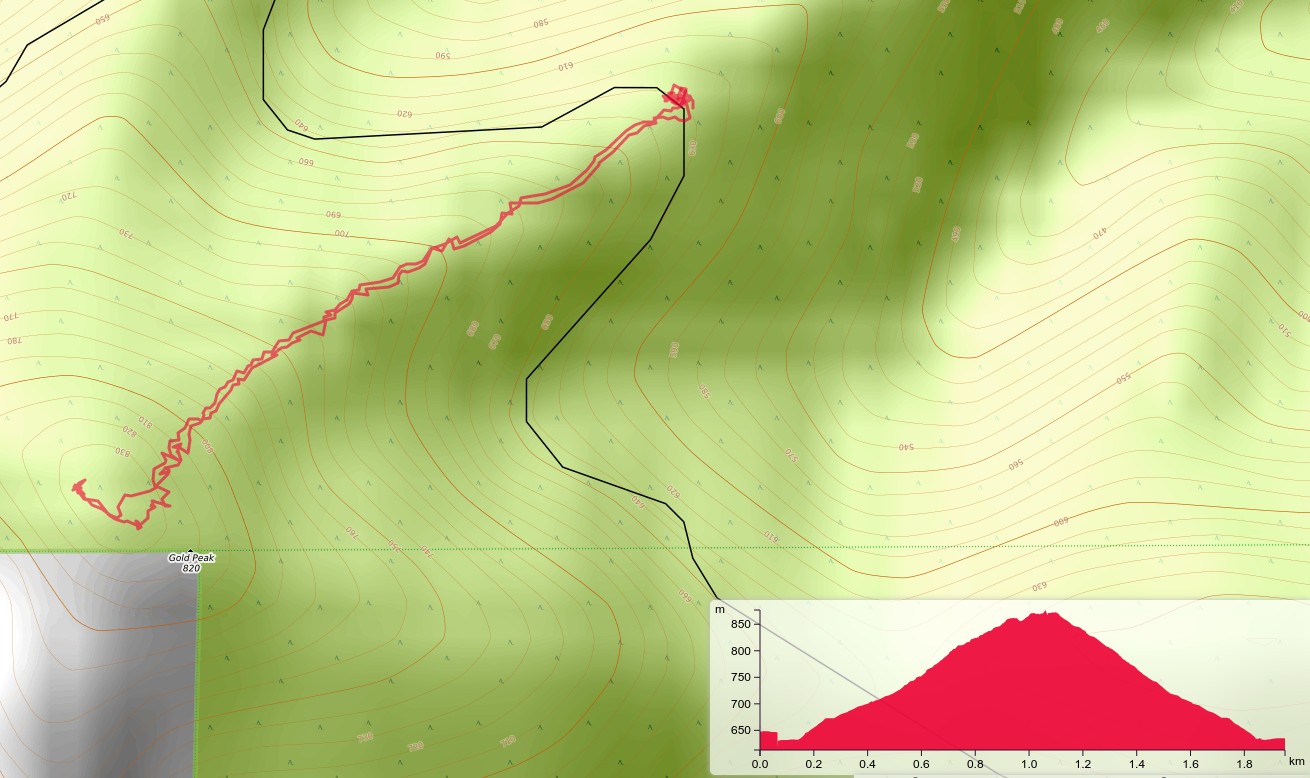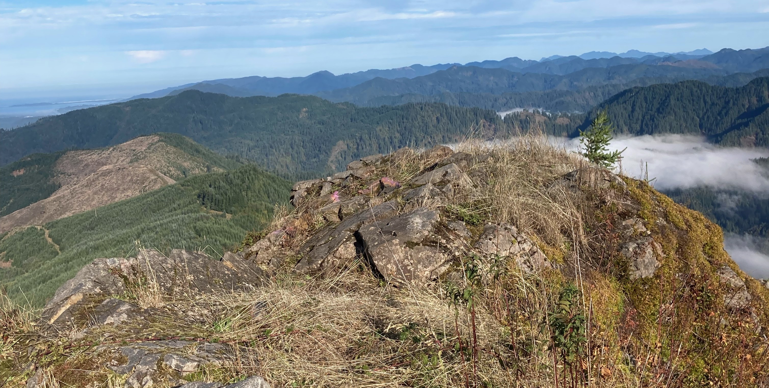 There is actually a bit of a trail to the top but it comes and goes as blow down obscures it or requires various routes to bypass. In essence though the trick is to stay on or near the very narrow ridge line. The other hint is to set your GPS for the saddle between the two parts of the peak, 45.4262, -123.6529. Then proceed to the peak from there. I climbed (and that is nearly the right word) to the SW false summit only to find my gps saying I was in the activation zone and Sota Goat saying I was not. Anyway, it was clear the tippy top was as advertised in the sota data base, and I proceeded there. If you find yourself using your hands, know that this is not required from the saddle. On the way down I traversed around the false summit to get back onto the ridge down. Be sure you go down the correct ridge to get back to your vehicle.
