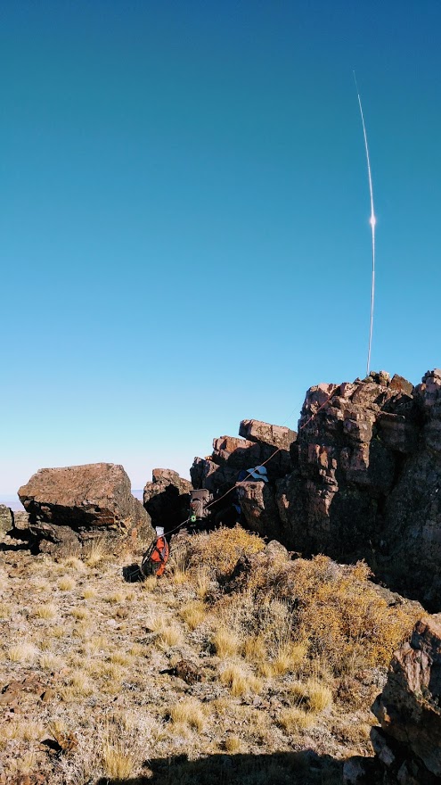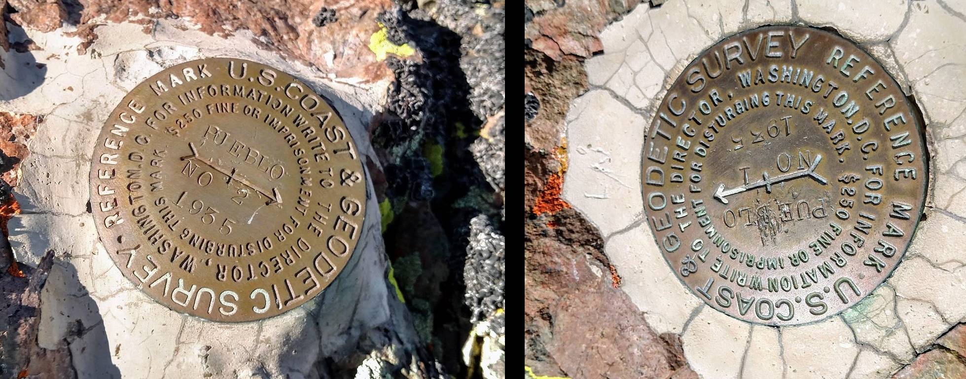 There are lots of rocks on the summit but no trees, so bring your own antenna support. The wind was high when we got there so we found a rock wall just east of the summit and still easily in the activation zone. I used a vertical pitched on top of the wall while I hunkered below. Cell service on Verizon was in and out. Great when it worked, but often it did not. (The mysteries of RF never fail to entertain.). We found two deferential bench marks., “You’re the summit.” “No, you’re the summit.” “ No, no, no, I insist, you’re the summit.”